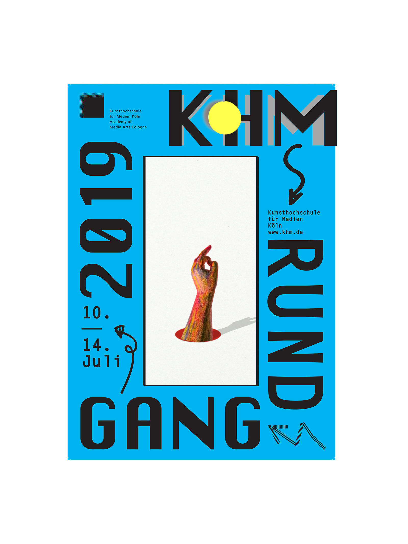 Aktuell werben blaue Plakate im Kölner Stadtraum für den Rundgang an der Kunsthochschule für Medien Köln (10. bis 14. Juli). In der Mitte befindet sich ein QR-Code, mit dem Smartphone Nutzer vier AR-Projekte erleben können, die Studierende für den Rundgang unter der Leitung von Jung Saeyun entwickelt haben. Bei der sogenannten Augmented Reality (AR) verschmilzt die Realität mit der virtuellen Realität auf dem internetfähigen Mobiltelefon.