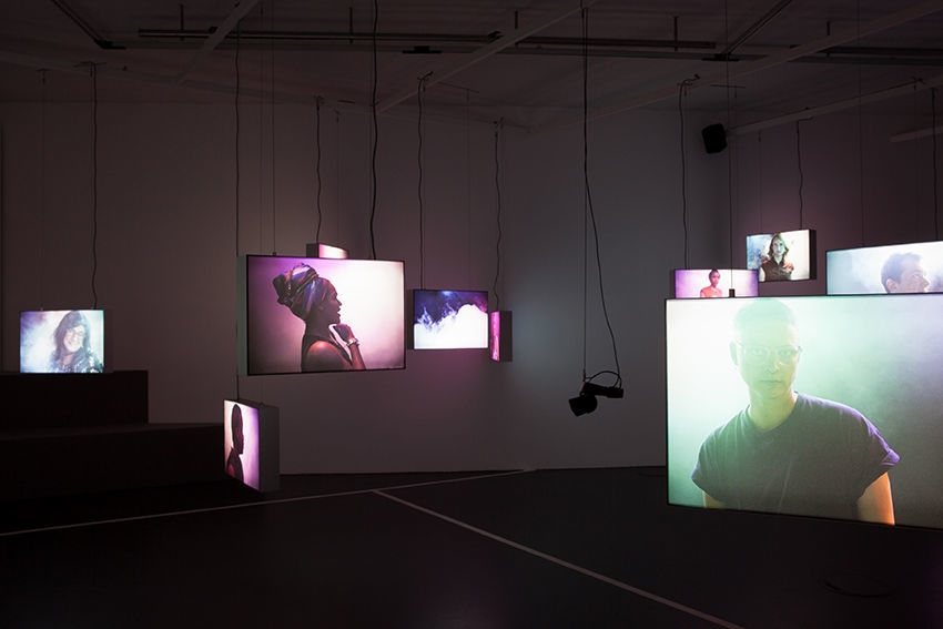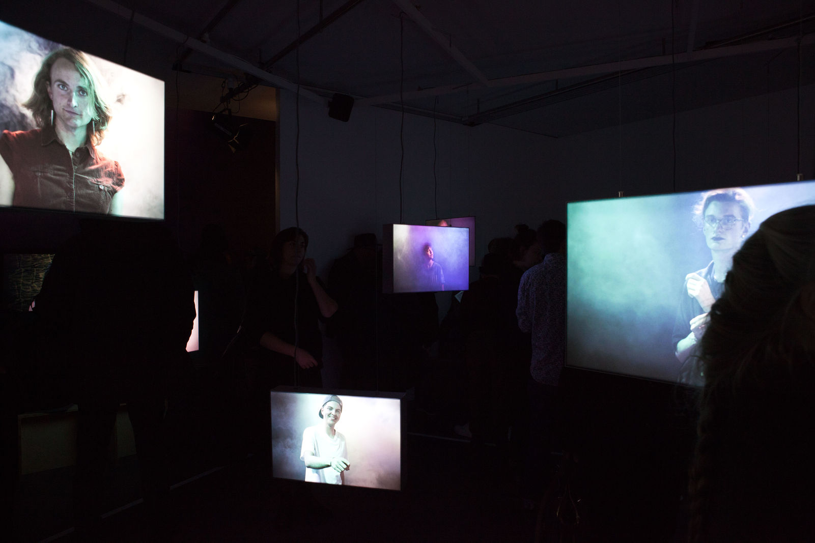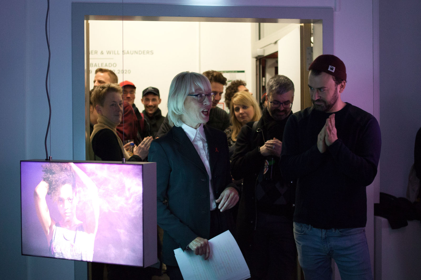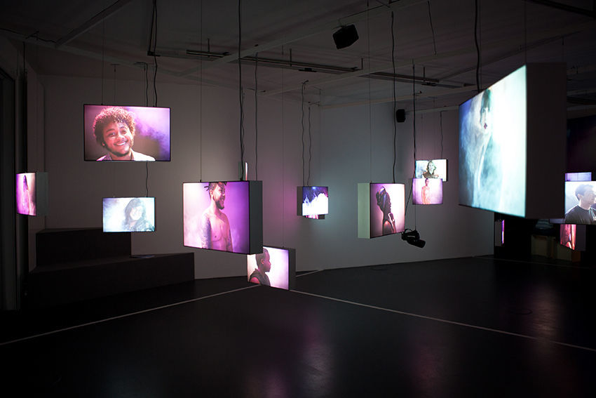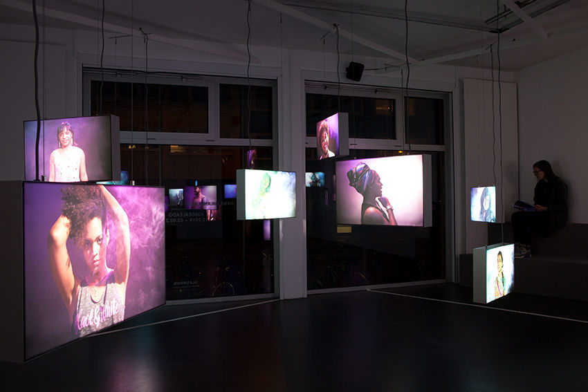 Hans Diernberger und Will Saunders arbeiten neben ihrem individuellen künstlerischen Werk seit 2012 immer wieder an gemeinsamen Projekten, vorwiegend in den Medien Video, Sound, Fotografie. Im Mittelpunkt ihrer Ausstellung #360baleado, die vom 12. Dezember 2019 bis 2. Februar 2020 in GLASMOOG zu sehen ist, steht ihre jüngste Kooperation, eine 360°-Virtual-Reality-Installation, die in engem Austausch mit trans* Communities im brasilianischen Salvador da Bahia und Köln entstanden ist. Die virtuelle transatlantische Begegnung zwischen den Protagonist*innen und mit den Ausstellungsbesucher*innen ereignet sich auf einer Art Spielfeld, das eine atmosphärisch dichte, dem Alltag enthobene bühnenähnliche Situation andeutet. Mehr als zwanzig im Raum verteilte illuminierte Fotoleuchtkästen lassen in sehr persönlichen Portraits und dokumentarischen Videointerviews eindrücklich Perspektiven und Realitäten von trans* Personen erfahrbar werden. Die 360°-Virtual-Reality-Installation versetzt die Ausstellungsbesucher*innen auf ein inszeniertes Spielfeld, das die Protagonist*innen Salvador da Bahia und Köln bereits für sich erobert haben, und mitten hinein in ein konfrontatives Ballspiel namens „baleado“, das im deutschsprachigen Raum als „Völkerball“ (auch: „Zweifelderball“) bekannt, aber auch als „Mobbing-Spiel“ verrufen ist.