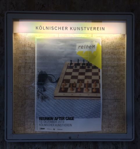 John Cages REUNION für präpariertes Schachbrett und Live-Elektronik wurde erstmals 1968 in Toronto aufgeführt: mit Marcel Duchamp, John Cage und Teeny Duchamp als Schachspieler sowie den Musikern David Behrman, Lowell Cross, Gordon Mumma und David Tudor.