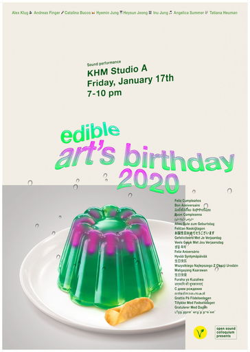 Dieses Jahr wird die Kunst 1.000.057 Jahre alt und Studierende des open sound colloquiums feiern den Geburtstag des Konzepts, das sie den Rest ihres Lebens nähren wird, mit einer “edible arts birthday” Party, bei der alle Klänge vom Essen abgeleitet werden: Zubereitung/Nehmen/Verzehren.