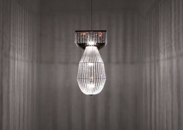 Die Arbeit Chandeliers beinhaltet ebenfalls ein Kriegsthema. Mit der Fertigung dieser Kristalllüster in Form der ersten je eingesetzten nuklearen Waffen, der Hiroshima-/Nagasaki-Bomben „Little Boy“ und „Fat Man“, wurden Swarovski-Designer beauftragt. Meist beschäftigen sie sich mit Schmuckgestaltung, in diesem Falle nun mit der Illuminierung von Symbolen, die für Waffentechnik und Massenvernichtung stehen. Die entstandenen bourgeoisen Repräsentationsaccessoires könnte man nahe am Zynismus denken. Definitiv verbinden diese Objekte jedoch in scharfer Formulierung Macht und Sexappeal.