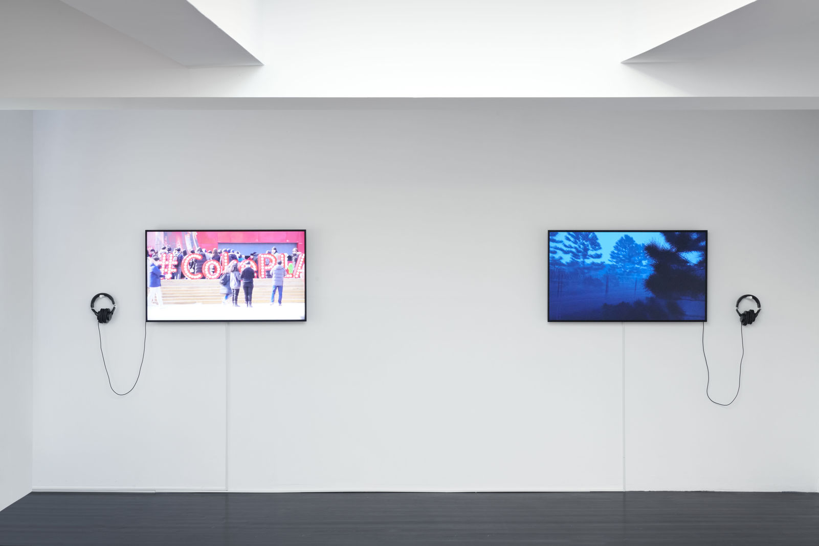 Im Zentrum von Seongmin Yuks Arbeiten stehen die gemeinsamen Merkmale und Vorstellungen von digitalem Wandel und Menschheit, deren Verbindungen in Video, Performance, Installation und Raummanipulation ihren Ausdruck finden. Das Einkanalvideo „I could once speak under two moons“ dekonstruiert den Schöpfungsmythos der Insel Jeju und wirft einen alternativen Blick auf dessen Bestandteile. Die Arbeit ist eine Umdeutung der Erzählung über die Entstehung von Jeju, in der dank menschlichem Eingreifen in das in Vorzeiten durch das tägliche Aufgehen von zwei Sonnen und zwei Monden verursachten Durcheinander eine friedliche und geordnete Oase der Ruhe entstand. Yuk erzählt die Geschichte aus der Sicht von Soldaten und Motten, um die menschliche Legitimation der eigenen linearen, humanozentrischen Einflussnahme zu hinterfragen.