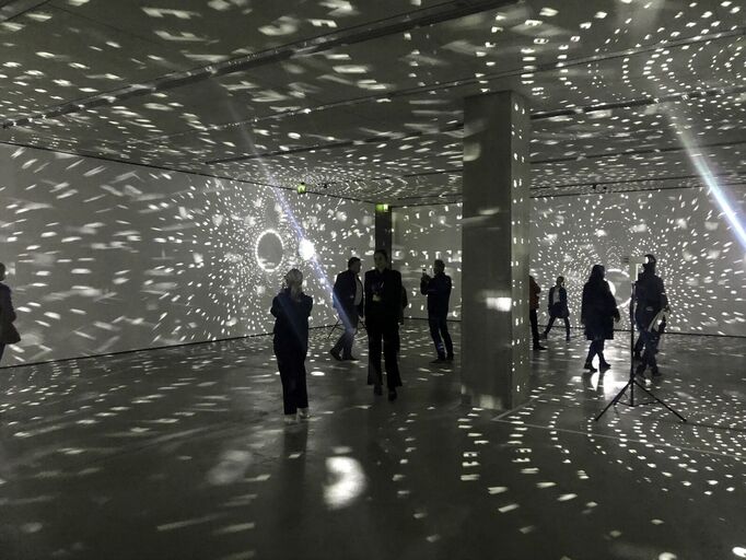 Mischa Kuball, five planets, 2015, Installationsansicht Museum der Moderne Salzburg 2019 © Archiv Mischa Kuball, Düsseldorf / VG Bild-Kunst, Bonn 2021, Foto: Museum der Moderne Salzburg / Tina Teufel