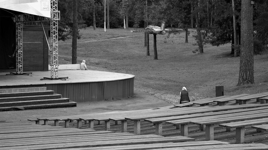 In der Stadt Schukowski bei Moskau findet jedes Jahr Ende August die internationale Messe für Luft- und Raumfahrt auf einem ehemaligen Militärflugplatz statt. Bis 2012 war dieser von einem Kiefernwald umgeben. Trotz massiver Proteste wurde der Wald damals illegal abgeholzt, um eine breitere Autobahn Richtung Messegelände zu bauen. Persönliche Erinnerungen der Bewohner*innen treten in Dialog mit Bildern der urbanen Landschaft von heute, wodurch eine episodenhafte Chronik potentieller Formen von Selbstorganisation entsteht.
