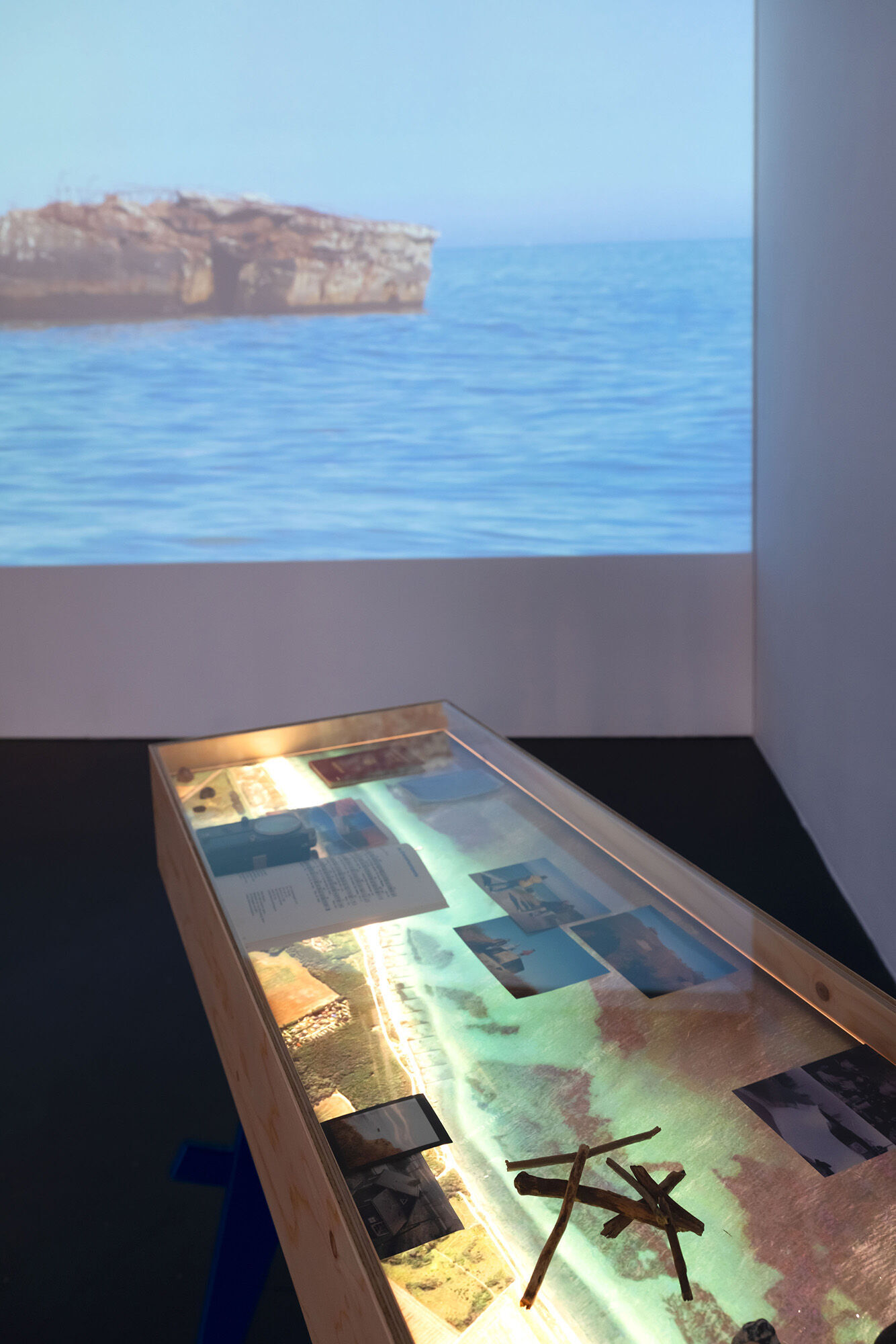 In ihrer Mixed-Media-Installation Die DDR hat’s nie gegeben (2021) setzt sich Anne Arndt mit dem Erbe der DDR auseinander am Beispiel einer Bunkeranlage an der Ostsee, die in der DDR als Grenzsicherungsanlage genutzt wurde. Die Bunker sind mittlerweile durch Stranderosion von der Küste ins Meer gewandert. In weniger als zehn Jahren werden sie komplett im Meer versunken sein. Das Verschwinden dieser Monolithen dient Anne Arndt als Metapher für den Umgang mit der Geschichte der DDR und verweist auf Konzepte wie Heimat versus Flucht, History versus Memory, Identität versus Othering.