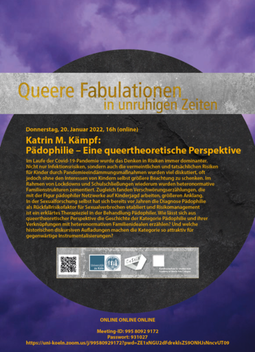 Im Laufe der Covid-19-Pandemie wurde das Denken in Risiken immer dominanter. Nicht nur Infektionsrisiken, sondern auch die vermeintlichen und tatsächlichen Risiken für Kinder durch Pandemieeindämmungsmaßnahmen wurden viel diskutiert, oft jedoch ohne den Interessen von Kindern selbst größere Beachtung zu schenken. Im Rahmen von Lockdowns und Schulschließungen wiederum wurden heteronormative Familienstrukturen zementiert. Zugleich fanden Verschwörungserzählungen, die mit der Figur pädophiler Netzwerke auf Kinderjagd arbeiten, größeren Anklang. In der Sexualforschung selbst hat sich bereits vor Jahren die Diagnose Pädophilie als Rückfallrisikofaktor für Sexualverbrechen etabliert und Risikomanagement ist ein erklärtes Therapieziel in der Behandlung Pädophiler. Wie lässt sich aus queertheoretischer Perspektive die Geschichte der Kategorie Pädophilie und ihrer Verknüpfungen mit
