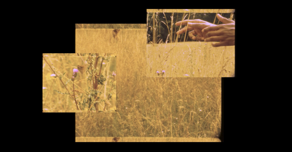 In der 8mm-Filmarbeit überlagern sich filmische Screens, die fragmentarisch die performativen Bewegungen von Akteur*innen nachzeichnen. Sie agieren allein in Feld- und Waldumgebungen, und doch zeigt sich in der Wiederholung und Überblendung ein Rhythmus, ein gemeinschaftliches, an ritualistische und religiöse Praktiken erinnerndes Miteinander, das für die Künstlerin in einer von ökologischen und geopolitischen Krisen geprägten Welt eine notwendige Praxis darstellt.