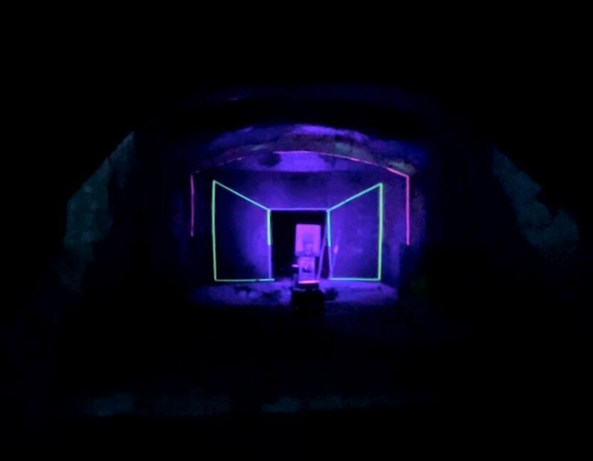 Die Erinnerungsskizzen aus der Vergangenheit werden in der Installation durch die Interaktion und das Zusammenspiel von UV-Licht und Dunkelheit eingefangen. Ein Skelett einer "Es war einmal eine Pflanze" wird zum Symbol für die unsichtbare Szene.