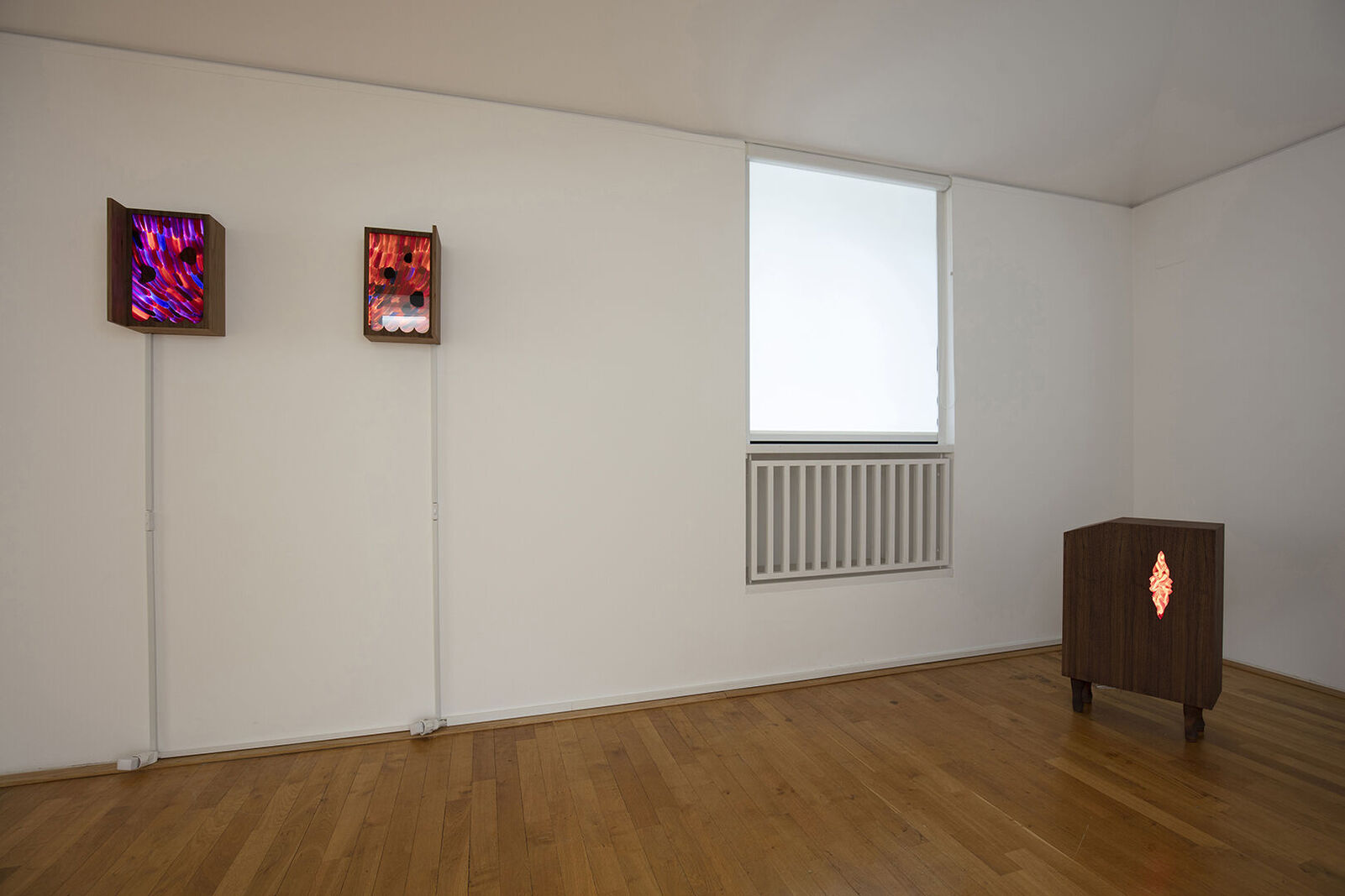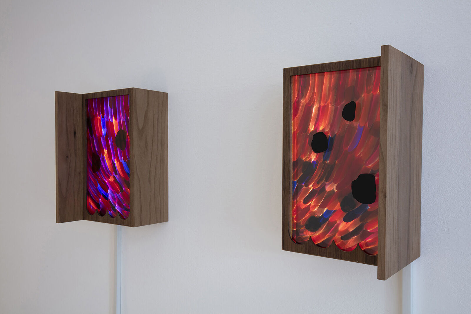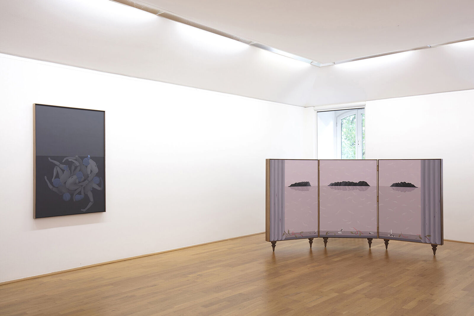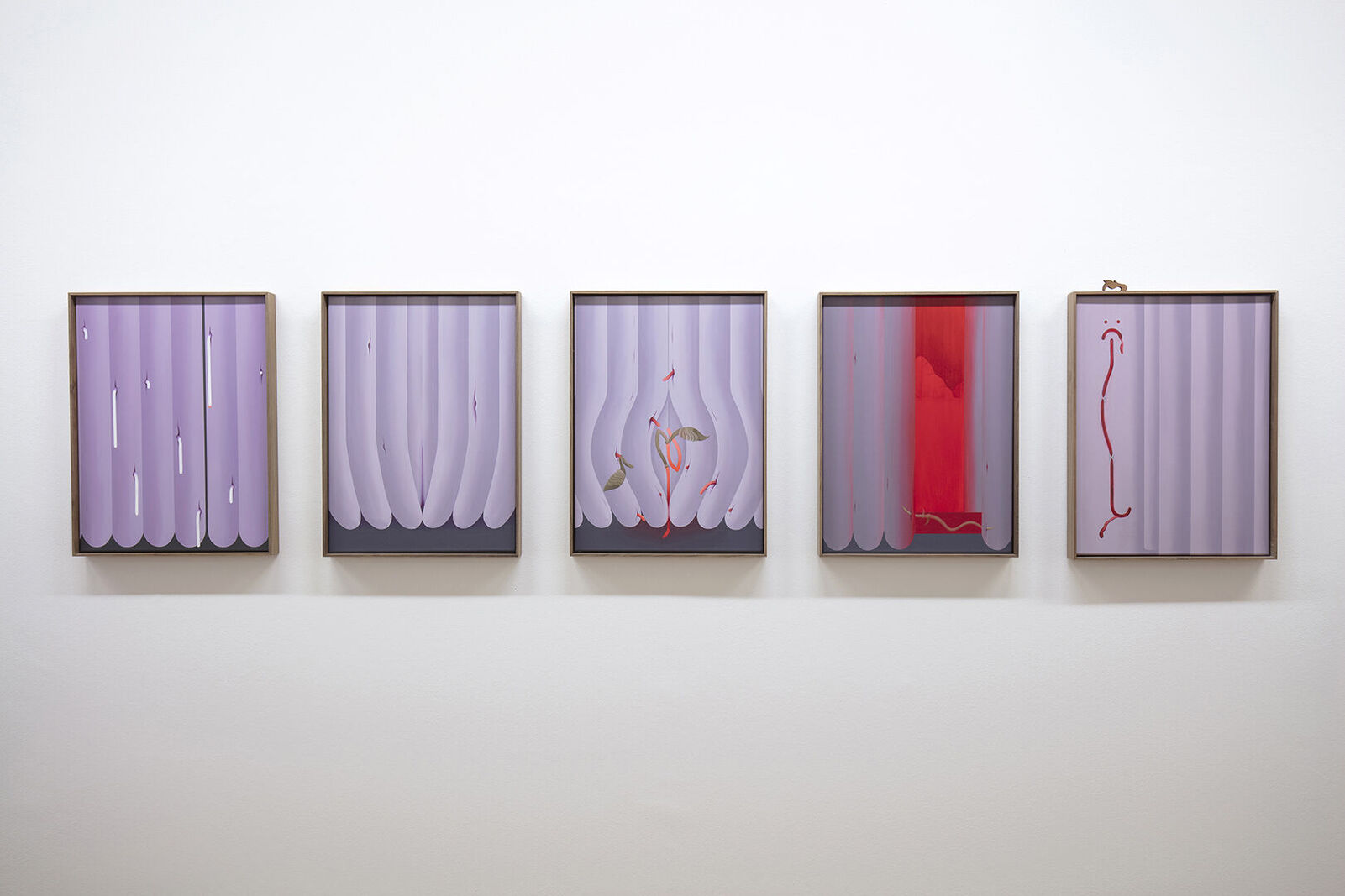 Der Titel der Ausstellung Curtains and Wounds (Vorhänge und Wunden) geht auf eine Werkserie von Rimma Arslanov aus den Jahren 2020-21 zurück, die in bühnenartigen Szenerien das Wechselverhältnis von Innen und Außen(welt), von Öffnung und Verschließung sowie Schutz und Verletzlichkeit in Frage stellt.