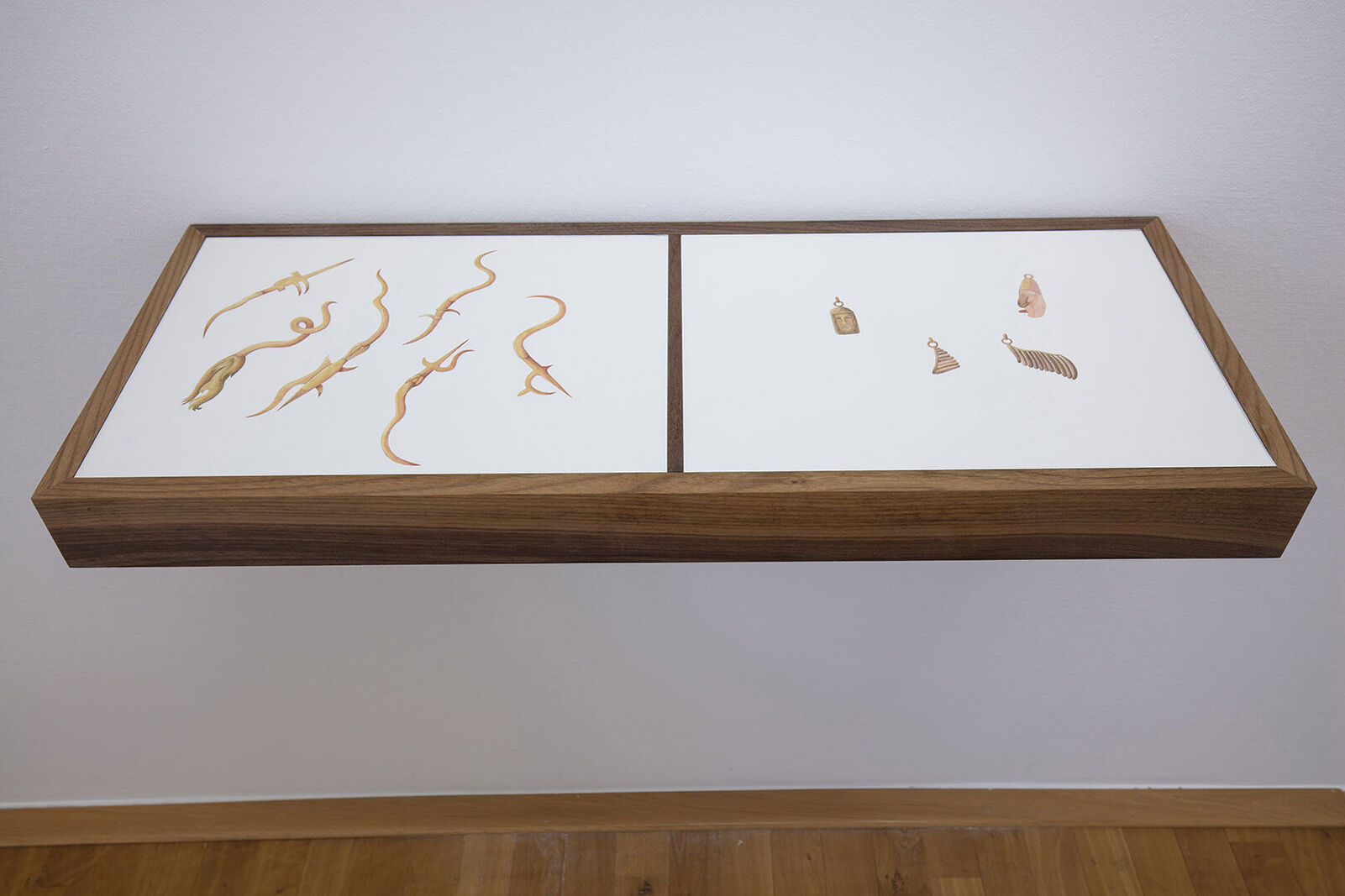 Rimma Arslanov, geboren 1978 in Tadschikistan und Preisträgerin des diesjährigen KHM-Förderpreises für Künstlerinnen, lotet in ihren Arbeiten eben jenen schmalen Grat der Eindeutigkeit aus. In ihren phantastischen Bildwelten heben sich die Grenzen zwischen Bild, Skulptur, Architektur und Kunsthandwerk gegenseitig auf und hinterfragen unsere Wahrnehmung von Tradition und Innovation, Ding und Leben, Verletzlichkeit und Gewalt. Einflüsse aus der orientalischen, muslimischen und sowjetischen Kultur werden in zeitgenössische Produktionsweisen integriert und verschmelzen zu neuen Welten.