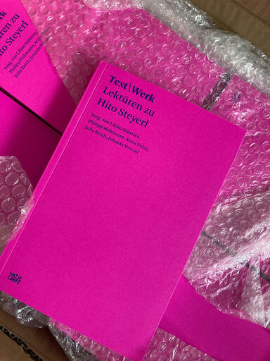 Anlässlich eines Workshops im Rahmen dieser Ausstellung erschien im letzten Jahr der Reader "Text\Werk Lektüren zu Hito Steyerl" (Hatje Cantz Verlag, Berlin). In dieser Publikation beschäftigen sich Autor*innen aus den Perspektiven von Kunst-, Medien und Theaterwissenschaft mit Themen der Ausstellung, erörtern Fragen des Dokumentarischen und nehmen Theoretisierungen von Steyerls multimedialem Werk vor. Dabei untersuchen sie insbesondere Verknüpfungen zwischen ihrem essayistischen und künstlerischen OEuvre.