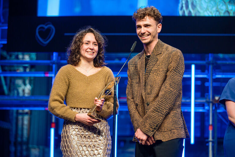 Sophia von Gaffron (Kreative Produktion) und Roman Wegera (Regie und Buch) wurden mit dem Max Ophüls Preis für den besten mittellangen Film ausgezeichnet (Foto: Max Kullmann /ffmop)