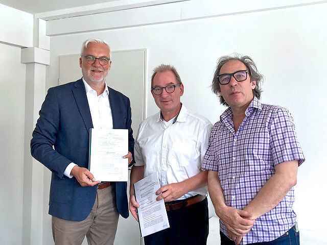 Seit gut drei Jahren plant die Handwerkskammer zu Köln mit der Kunsthochschule für Medien Köln (KHM) den Einzug in das komplett sanierte Gebäude am Heumarkt 14. Der letzte Schritt dazu wurde jetzt von Garrelt Duin, dem Hauptgeschäftsführer der HWK, von Dr. Oliver Herrmann, dem kommissarischen Kanzler und Staatsbeauftragten der KHM, und von Prof. Mathias Antlfinger, dem Rektor der KHM, vollzogen: Der Umzug ist für Anfang 2024 geplant und vertraglich besiegelt. Die KHM mietet das L-förmige und mit einem 11-stöckigem Turm ausgestattete Gebäude für die nächsten 30 Jahre als neues Hauptgebäude und Zuhause.