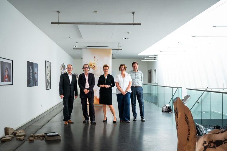 Mathias Antlfinger, Rektor der KHM: "Die Gespräche mit Ministerin Ina Brandes fanden in einer Atmosphäre großer Offenheit statt und waren geprägt von einem außerordentlichen Interesse, an dem was wir an unserer Kunsthochschule machen. In der Kürze der Zeit war es natürlich nicht möglich, alle Facetten der KHM abzubilden. Ich bin allen beteiligten Kolleg*innen und Studierenden dankbar, dass es durch ihr Engagement an diesem Tag gelungen ist, die Vielfalt unserer Arbeitsfelder exemplarisch zu zeigen.