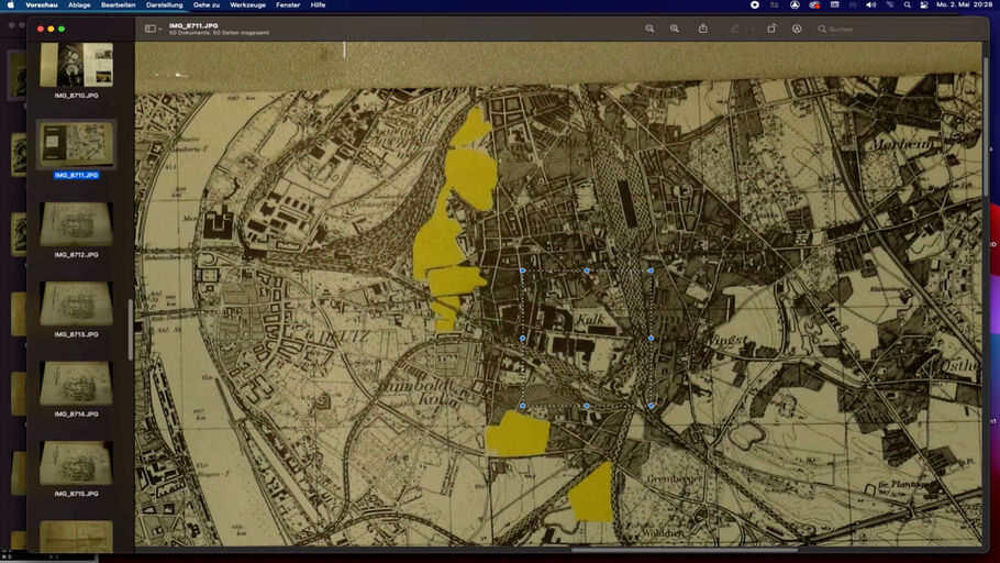 Archivmaterialien über die Chemiefabrik Kalk in Köln. Mit schnellen Schnitten erzählt der Film von der Suche, vom Wegwerfen, von Lücken und Fehlern und vom eigenen