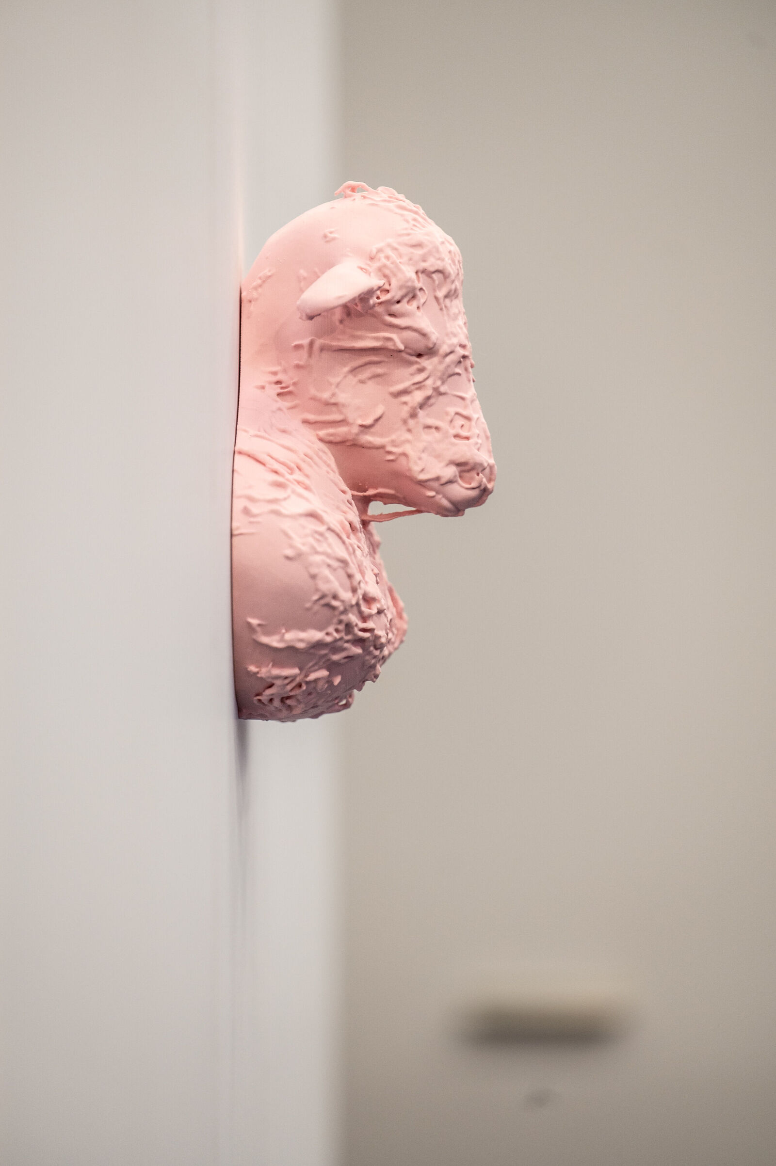 Kristina Lenz & Alex Simon Klug widmen sich in ihrem Werkkomplex "unsolid ground" (2023) mit archäologischem Blick den KI-basierten Werkzeugen an Bildgeneratoren, die durch die Eingabe von Textbefehlen Bilder generieren können. Als Ausgangspunkt fungiert das sogenannte „Handproblem“, bei dem die falsche Darstellung von Händen als Erkennungsmerkmal für generierte Bilder diente. Dieses frühe Stadium der naiven Freiheit einer wachsenden „Intelligenz“ fangen die beiden Künstler*innen als Fossil einer sich rasch entwickelnden Technologie in Beton gegossenen Artefakten ein.