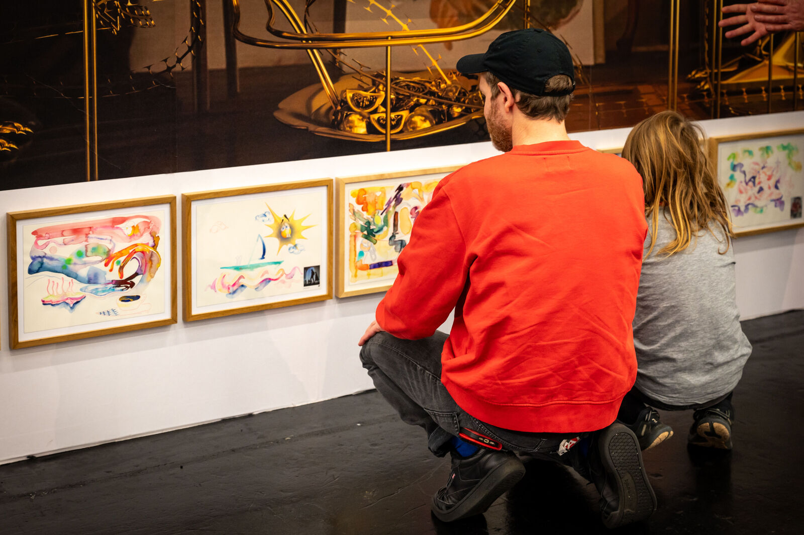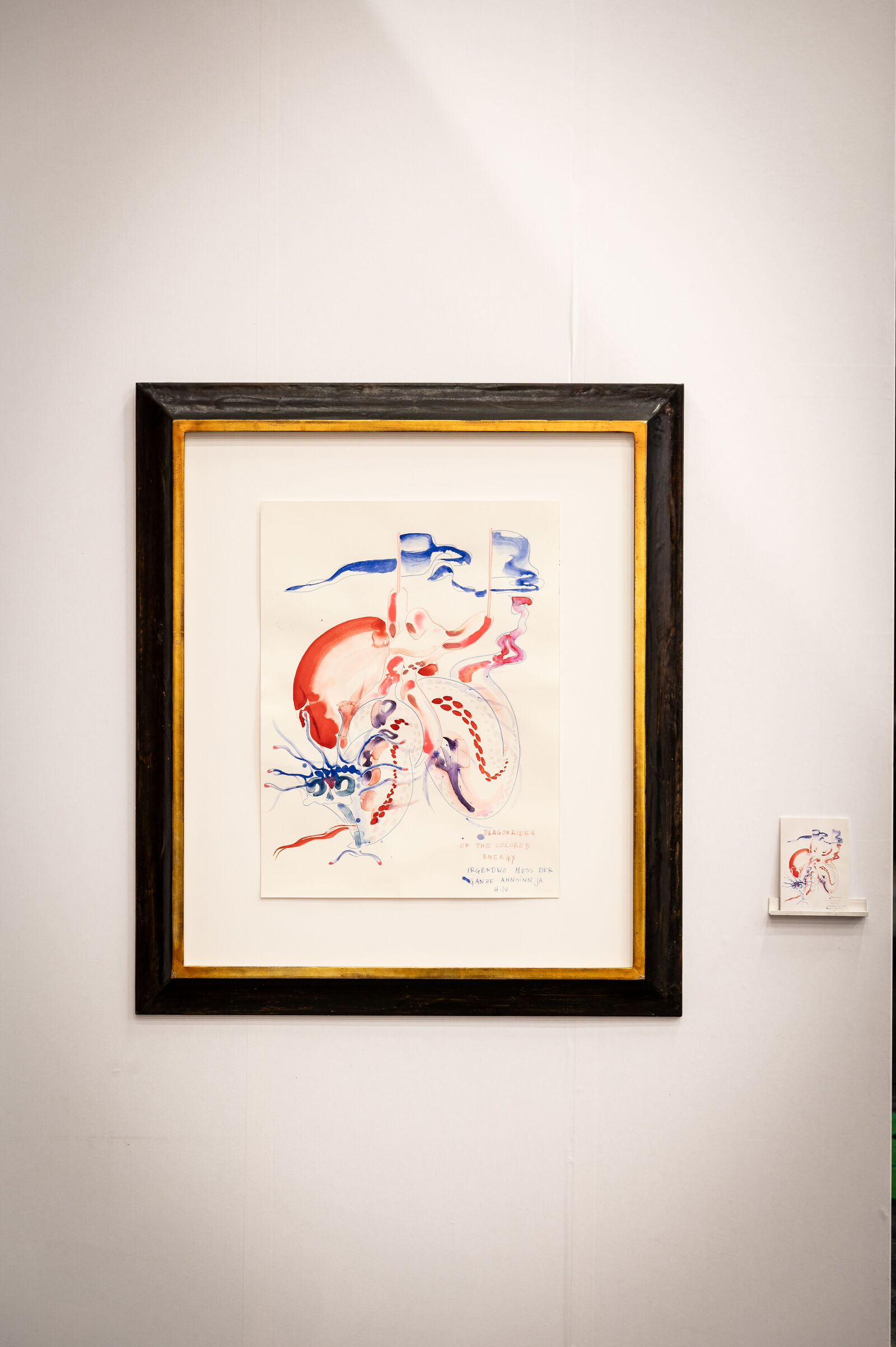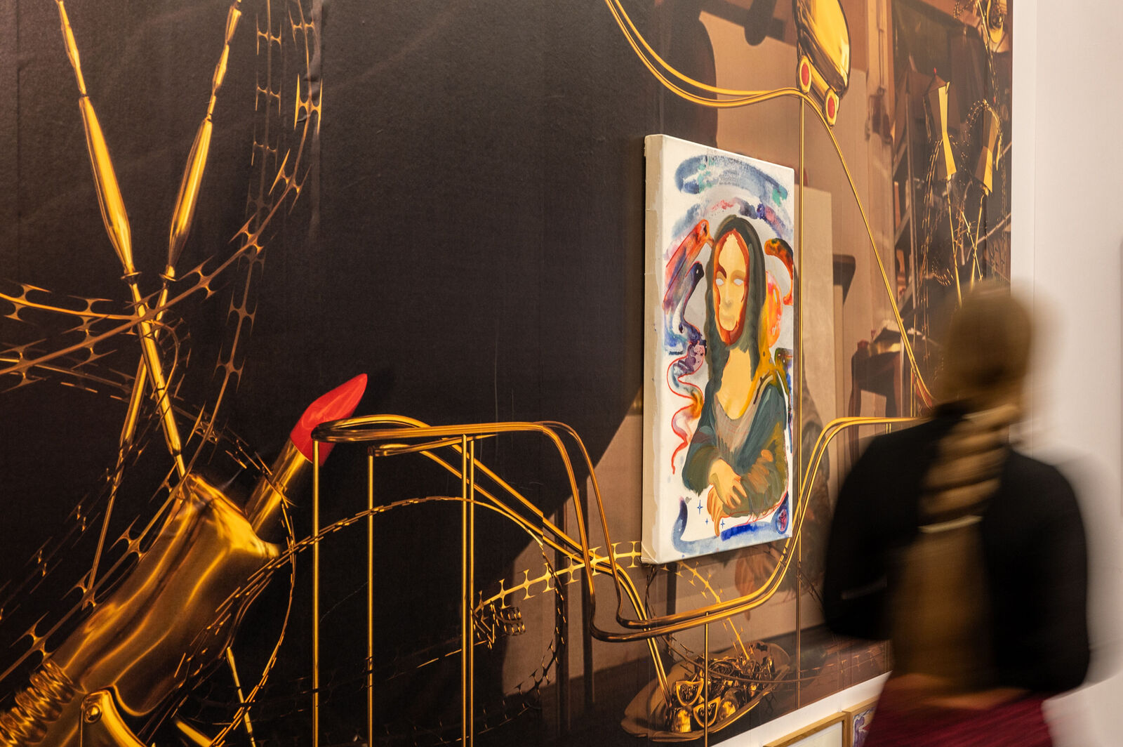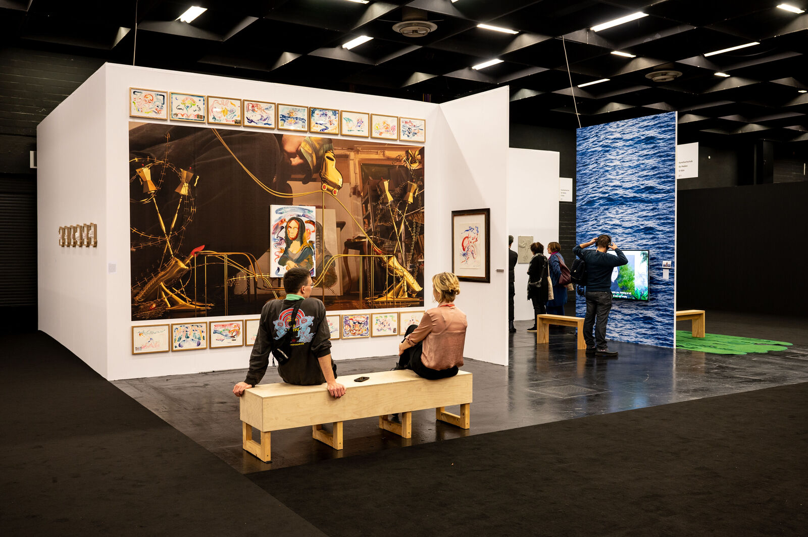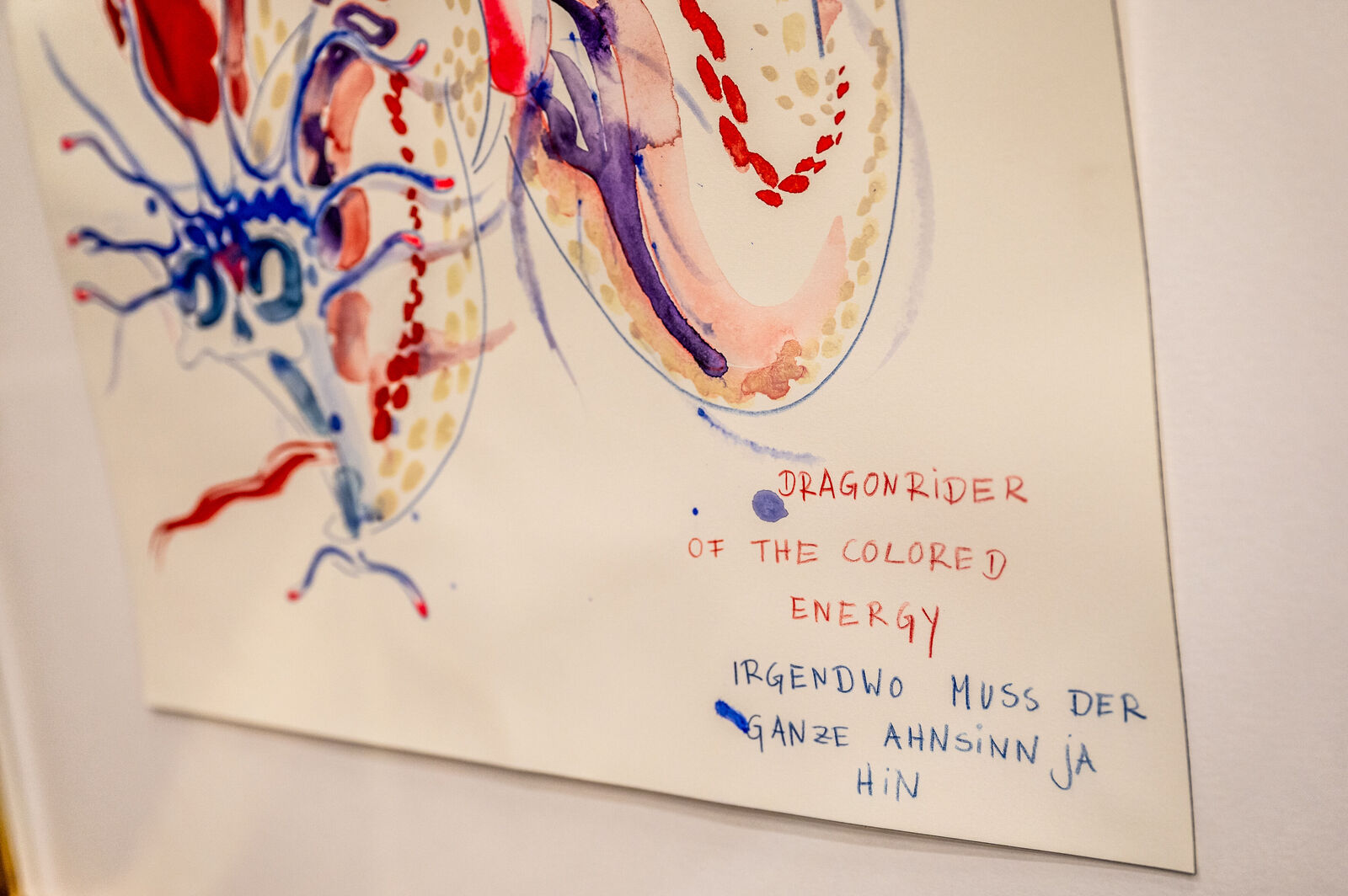 Nikolas Müller kontextualisiert eine Auswahl seiner Aquarelle in einer eigens für die ART COLOGNE 2023 entstandenen Wandinstallation in "Dragonrider of the colored energy". So entsteht ein ganz eigener Kosmos aus persönlichen Bezugnahmen und gesellschaftspolitischen Fragestellungen.