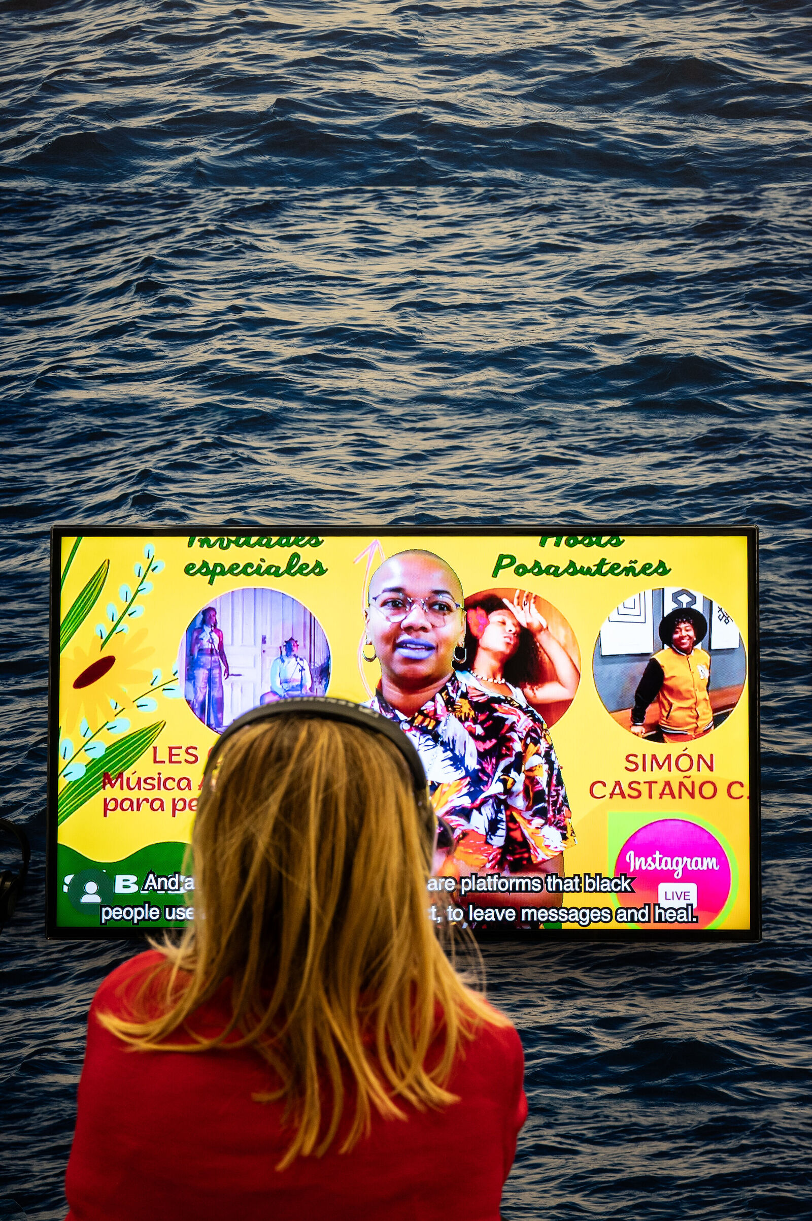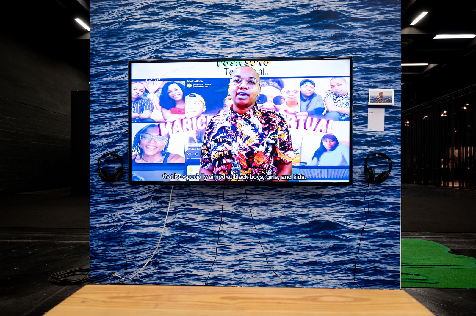 Will Fredo erforscht Machtdynamiken und Überschneidung von dekolonialem Denken, Blackness, Indigenität, Kuirness, Gemeinschaft und Technologie. In der Videoarbeit "OUR HOUSE" (2023) porträtiert Will Fredo den Queer Quilombismo des afrokolumbianischen Kuir-Kollektivs POSÁ SUTO, das in Kolumbien kulturpädagogische Aktivitäten durchführt.