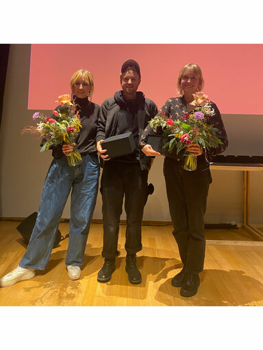 Der 3. und mit 6.000 Euro dotierte Design Preis erhielten Kristina Lenz und Alex Simon Klug für ihre Arbeit "The Hands Problem", der Sonderpreis von KölnBusiness mit ebenfalls 6.000 Euro ging an Rike Hopsse und ihre "Künstler*innenkabine". Die Preisträger*innen haben gerade ihr Diplomstudium an der KHM abgeschlossen.