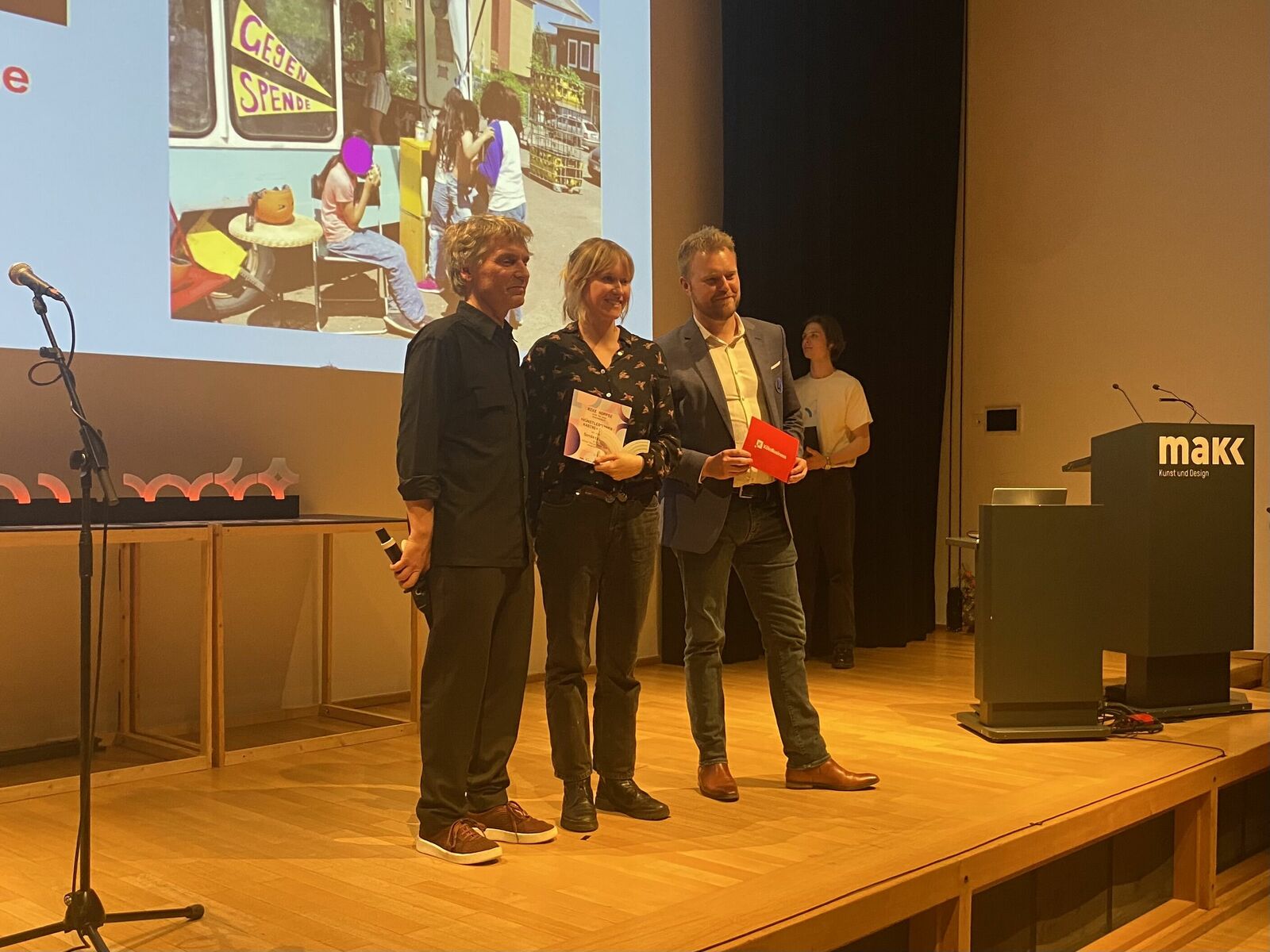 Bei der Preisverleihung und Ausstellungseröffnung im MAKK gewannen die drei Künstler*innen der KHM den Sonderpreis von KölnBusiness und den 3. Preis.