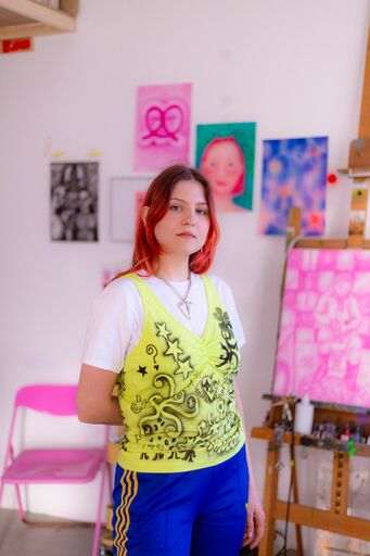 Julia Jesionek (*1998 in Gifhorn, lebt in Köln) arbeitet in den Medien Animationsfilm, Malerei und Zeichnung. In ihren Arbeiten beschäftigt sie sich mit Themen der Weiblichkeit, Identität und Introspektion. Persönliche Erlebnisse, Erfahrungen und Gefühle verschmelzen mit fiktiven Elementen und lassen in eine intime und verletzliche Innenwelt blicken. So auch ihr autofiktionaler Animationsfilm Everythingness (2024), der auf der Shortlist zur Nominierung für den deutschen Kurzfilmpreis 2024 stand, und von innerer Zerrissenheit und dem Hadern mit persönlichen Entscheidungen erzählt.