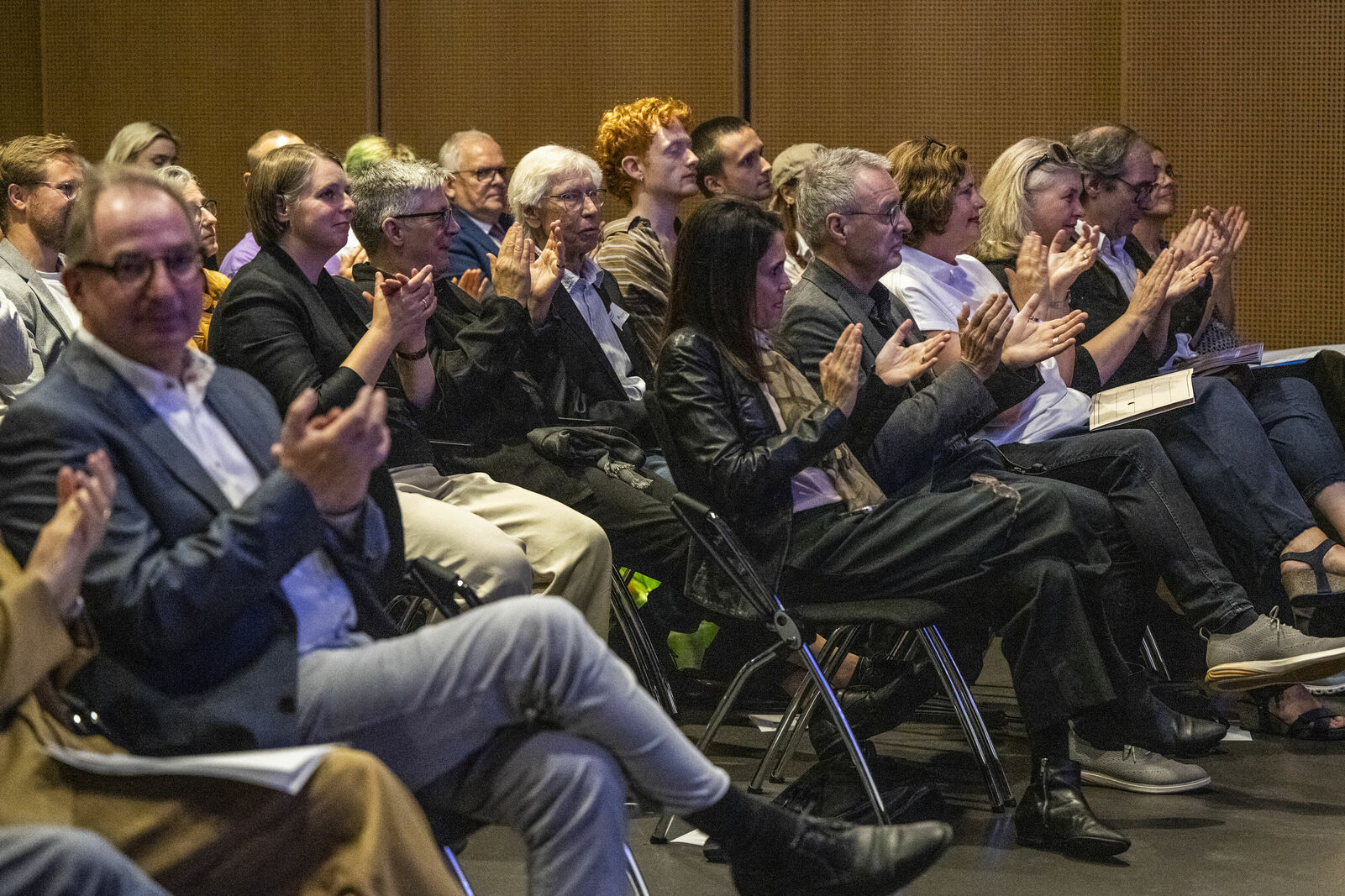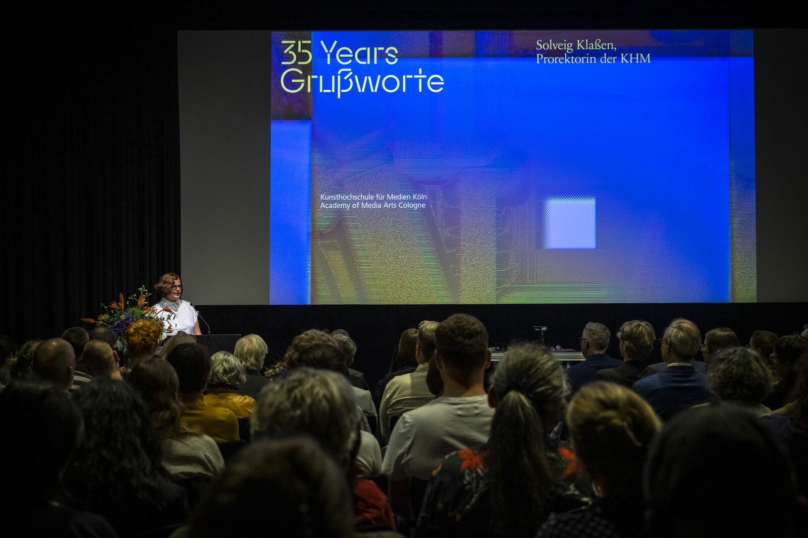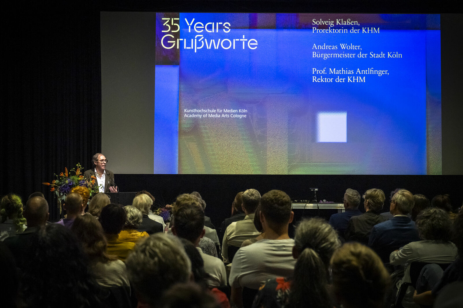 Die KHM feierte am 16. Juli ihr 35-jähriges Bestehen mit einem Festprogramm zum diesjährigen Rundgang. Nach den Grußworten von Prorektorin Solveig Klaßen, von Kölns Bürgermeister Andreas Wolter und vom Rektor Prof. Mathias Antlfinger sprach der Medien- und Kulturphilosoph Prof. Dr. Roberto Simanowski über „Algorithmic Reparation. Wie Sprachmodelle die Welt verbessern wollen und was sie dabei von der Kunst lernen können.“ Es folgte eine Performance von Chanmin Kim, Student an der KHM. ImAnschluss verlieh Isabel Apiarius-Hanstein, Vorstandsvorsitzende der Freunde der KHM e.V., den mit 7.500 Euro dotierten Großen Kunstpreis an die KHM-Absolventin Javkhlan Ariunbold.