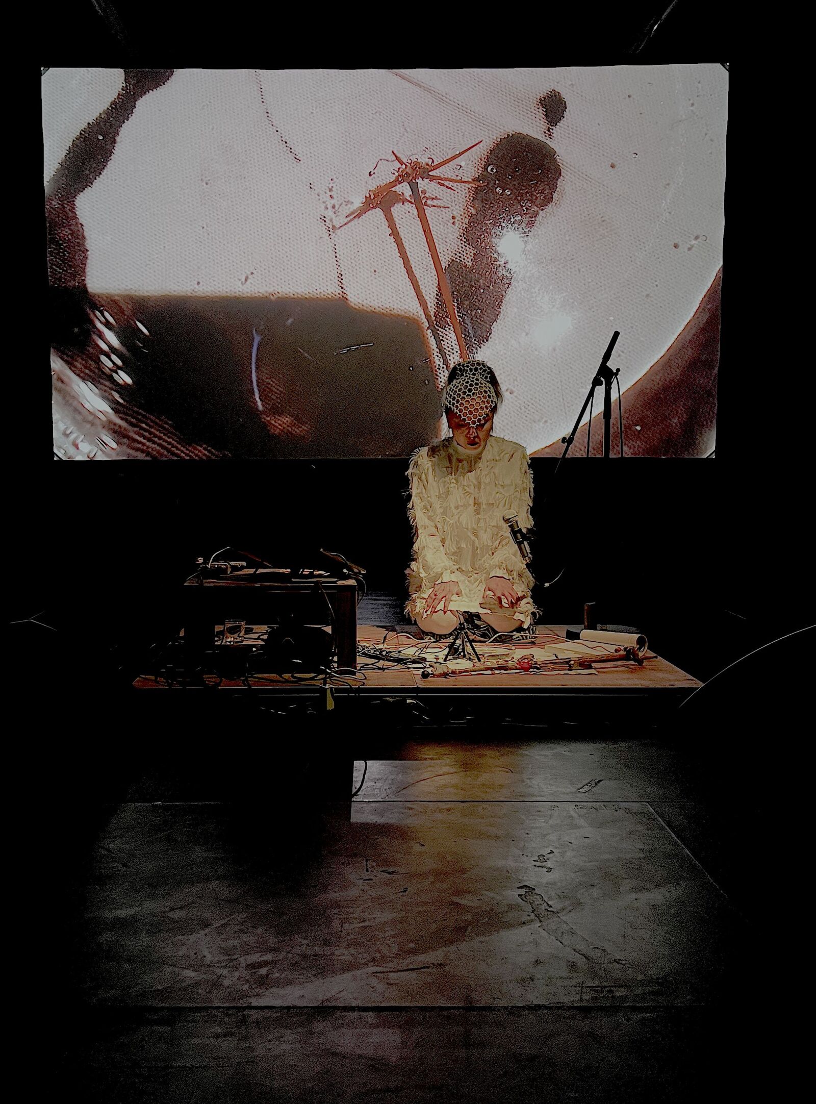 Threads of Decay, Spikes of Reverie ist eine transmediale Performance, die Klang, Bild und Geste mit den Überresten eines San-Pedro-Kaktus verwebt, der in einen Monochord-Instrument-Altar verwandelt wurde. Durch Live-Improvisation, Diffusionsmodelle und zyklische Rituale von Wachstum und Verfall verbindet das Werk Pflanze, Körper und Algorithmus zu einem intimen Dialog über Transformation und Gegenseitigkeit.
