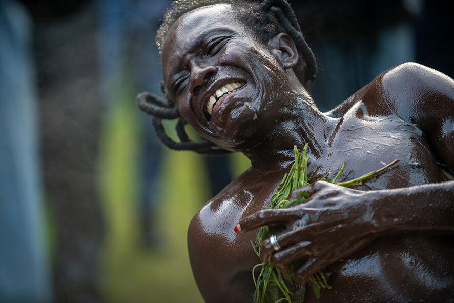 Va-Bene Elikem Fiats radikale Performances zeugen stets von echter Empathie, Mitgefühl und Solidarität. Sie laden Teilnehmer_innen, Zeug_innen und Zuschauer_innen dazu ein, über den weltweiten Aufstieg faschistischer Bewegungen nachzudenken und gegen anti-queere Kräfte vorzugehen, die LGBTQIA+-Personen nachzudenken und gegen anti-queere Kräfte vorzugehen, die LGBTQIA+-Personen sowohl innerhalb als auch außerhalb Ghanas verurteilen.