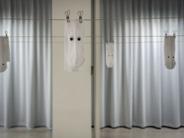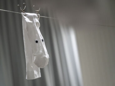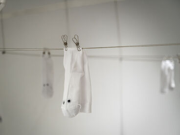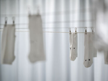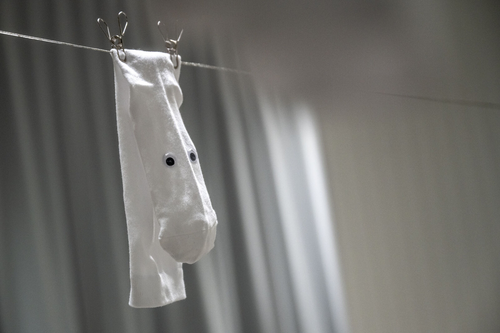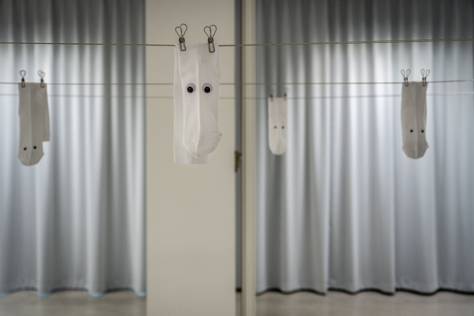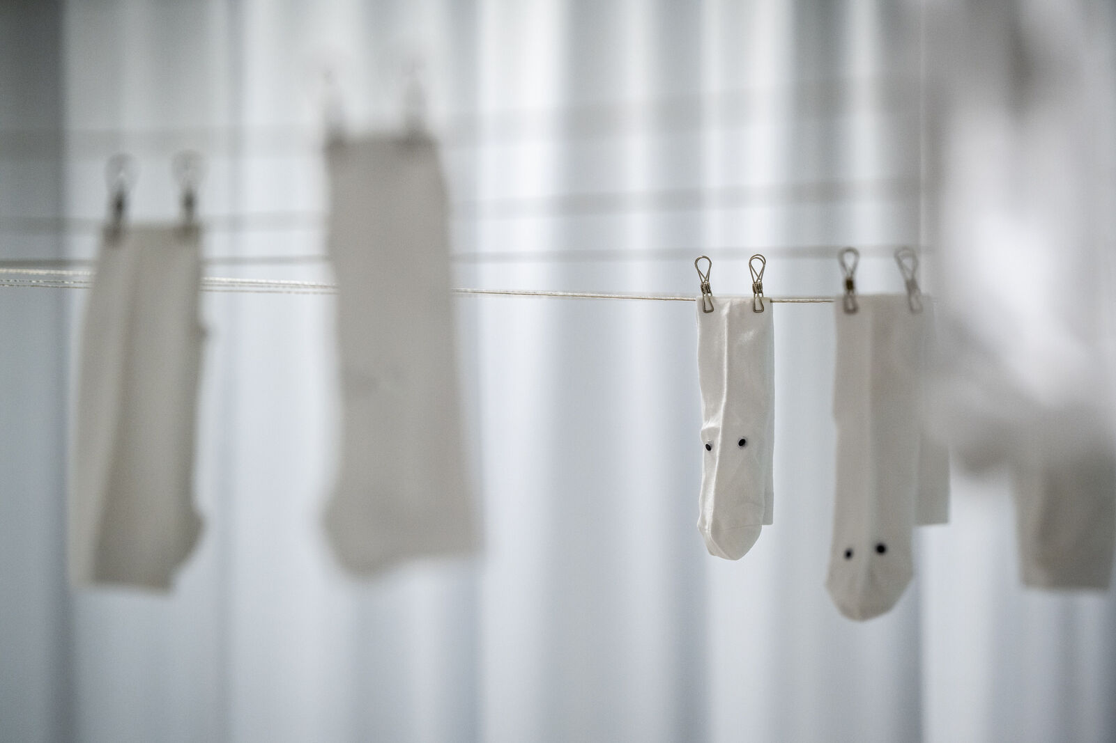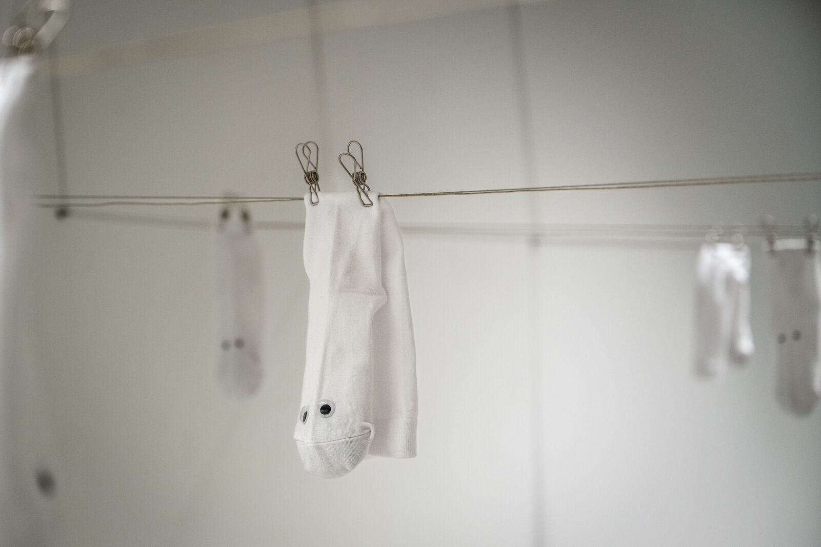 White socks crowd a clothesline, whispering for quite some time. As you enter on soft feet, they don't seem to mind you.