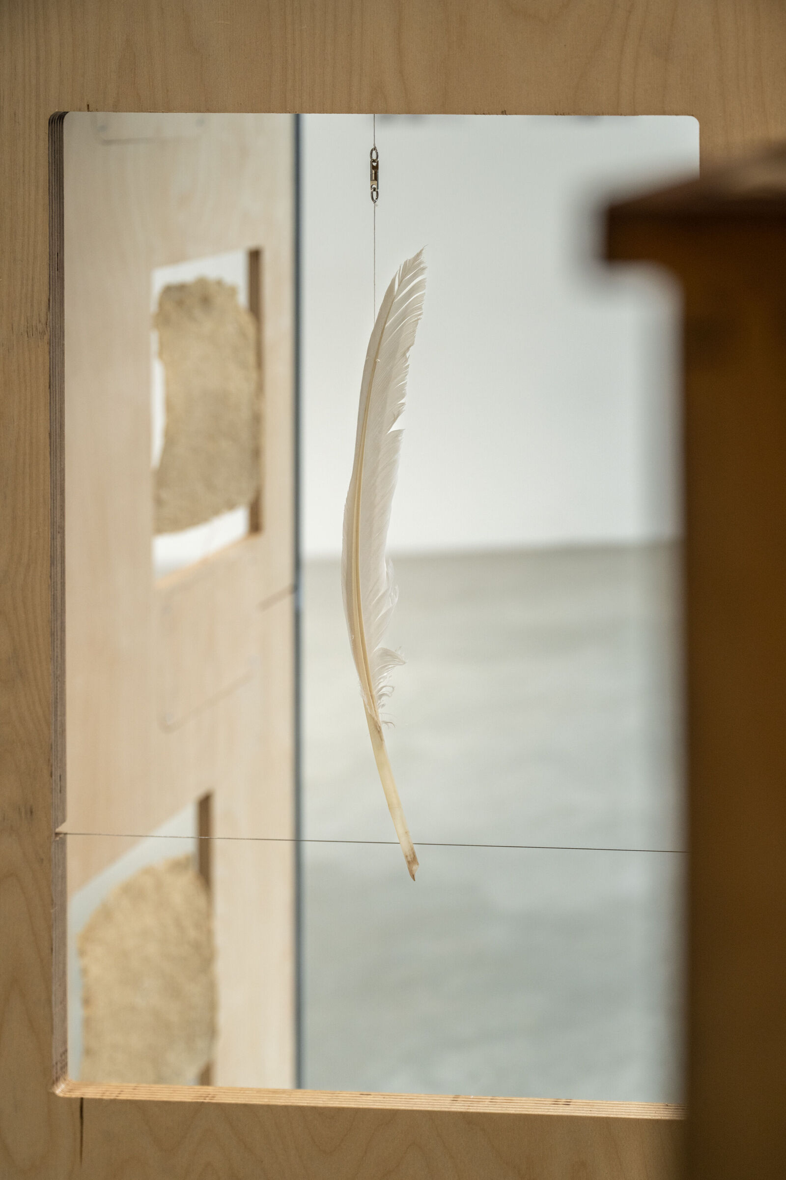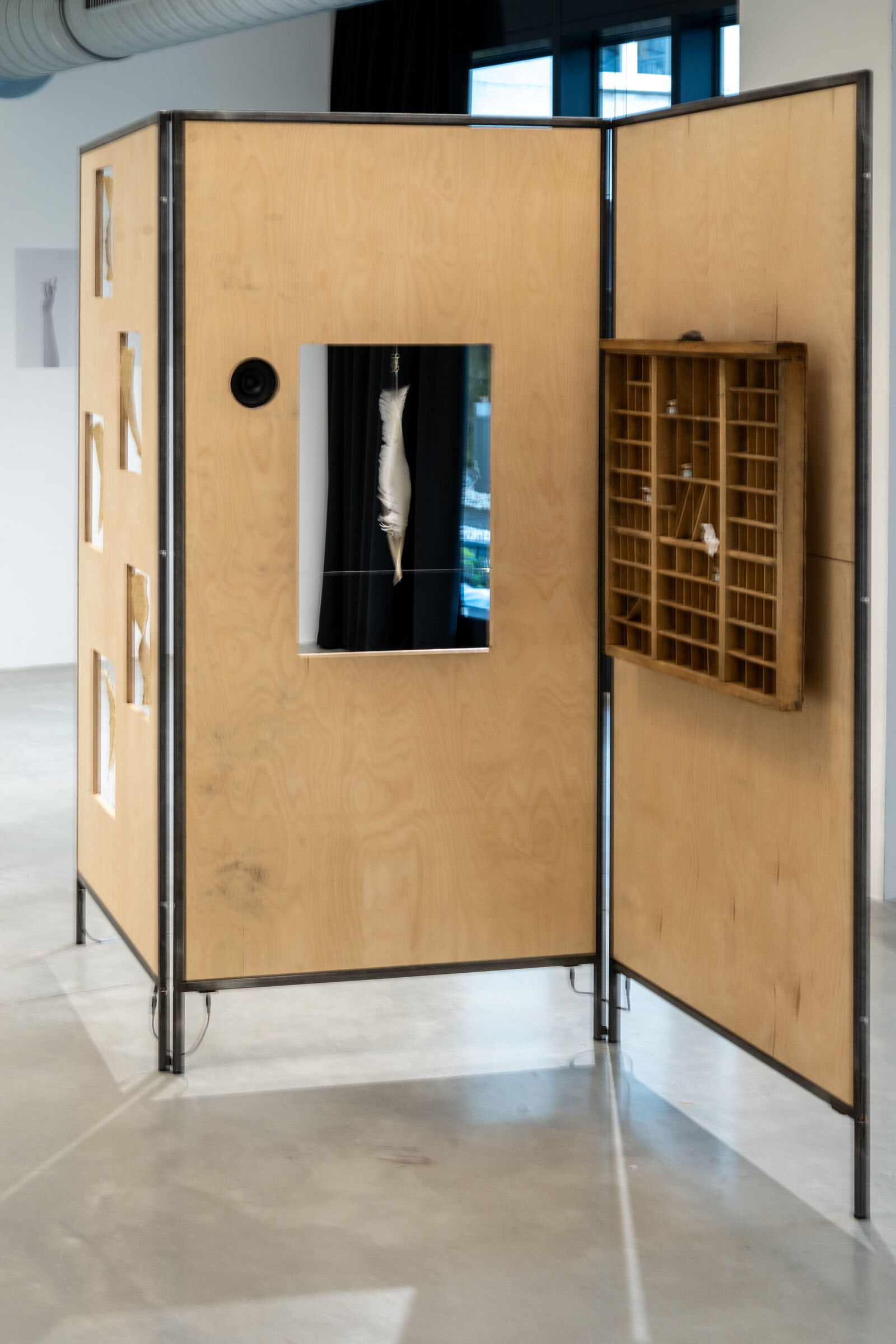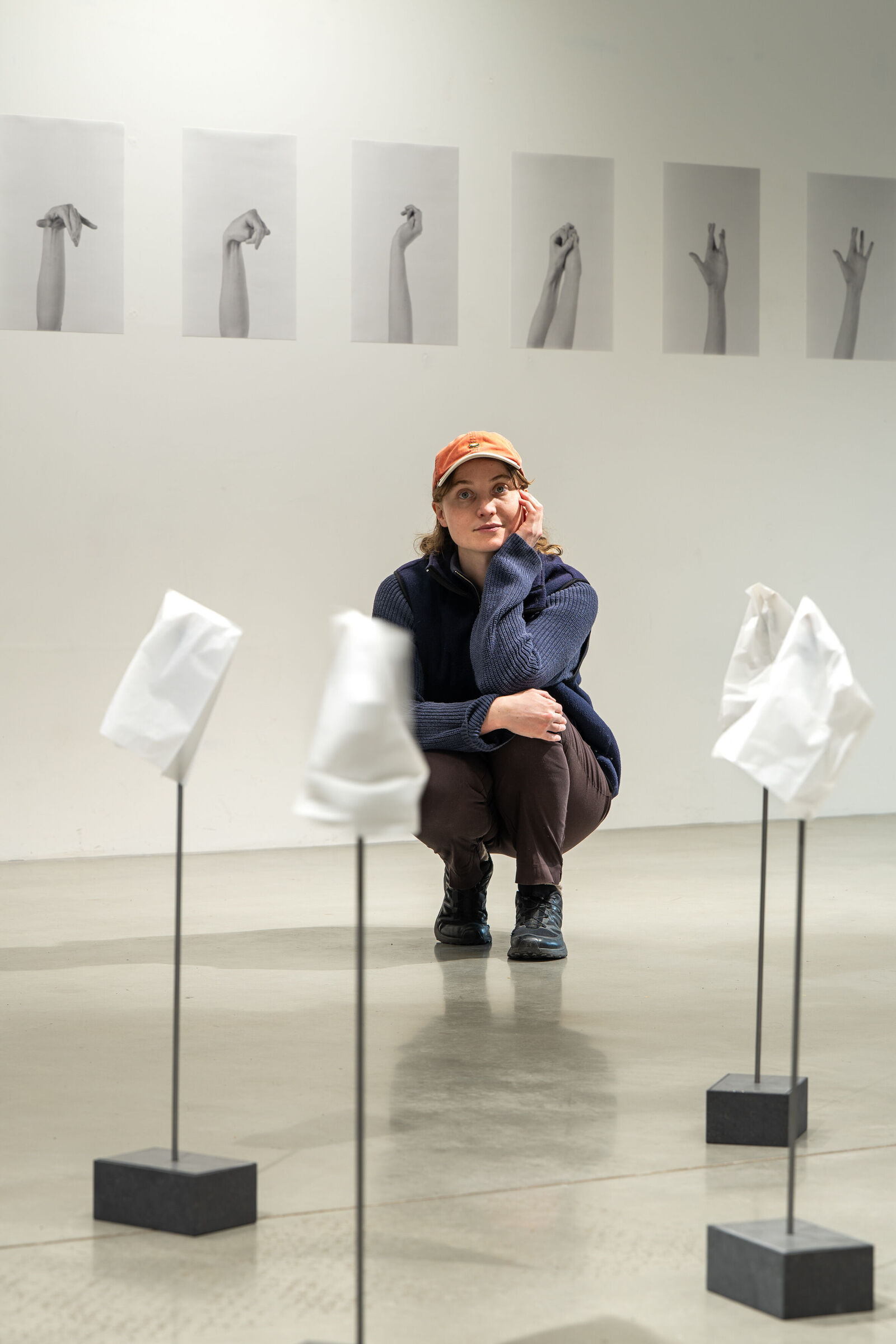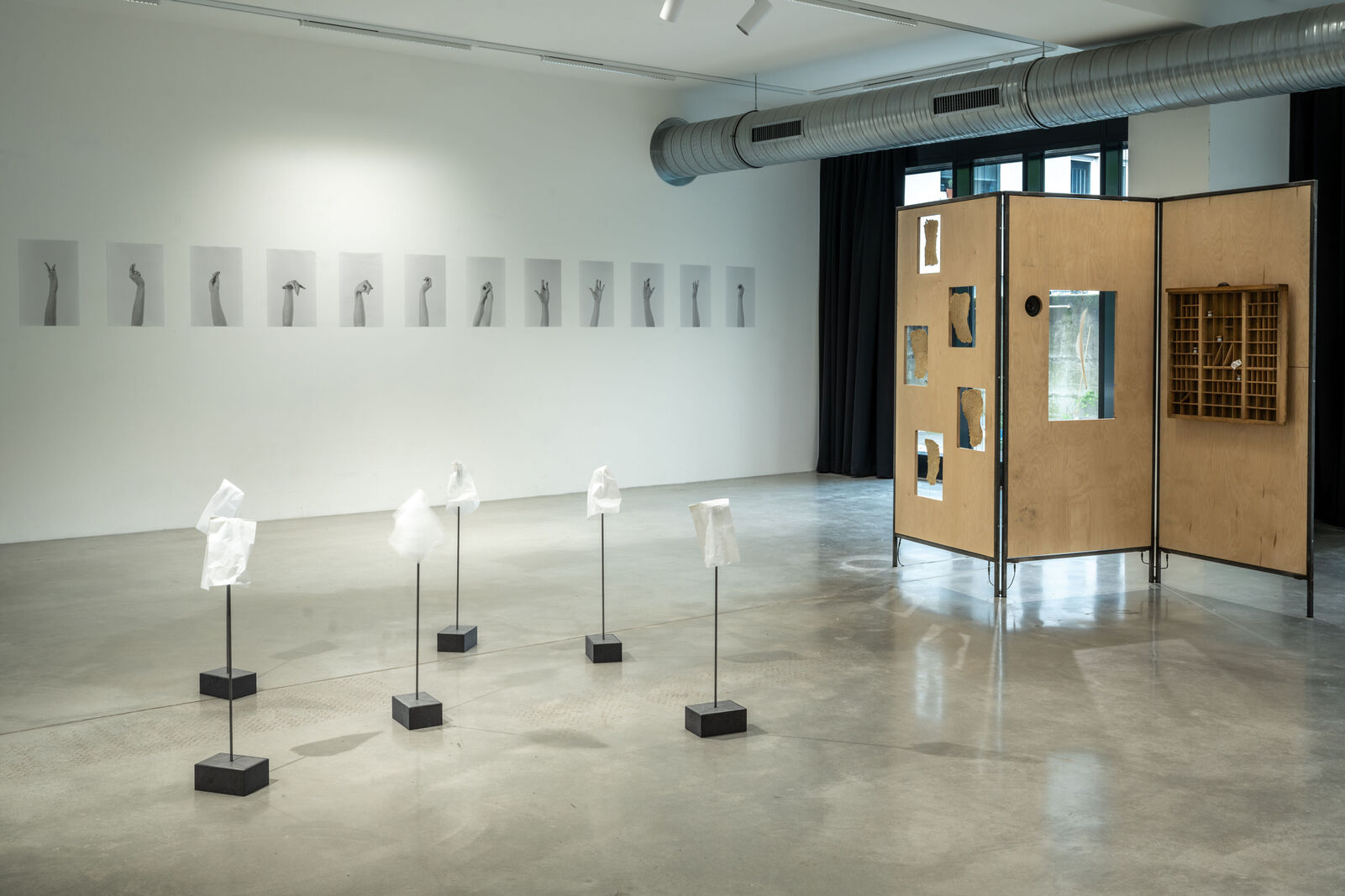 Im Mittelpunkt der Diplomausstellung von Esther Rosiny-Wieland steht das Buch als Medium, um etwas zu sammeln und Verbindungen zu knüpfen. Sie kombiniert zeitgenössische und archaische Technologien, wie Elektronik, das Schöpfen von Papier, Knoten und Buchbindetechniken. Dies bildet die Grundlage für ihre Auseinandersetzung mit den Wechselwirkungen von Klang, Bewegung und Schrift sowie mit der Bedeutung manueller Arbeit und haptischer Erfahrungen für zwischenmenschliche Beziehungen in von digitalen Umgebungen geprägten Lebensrealitäten.