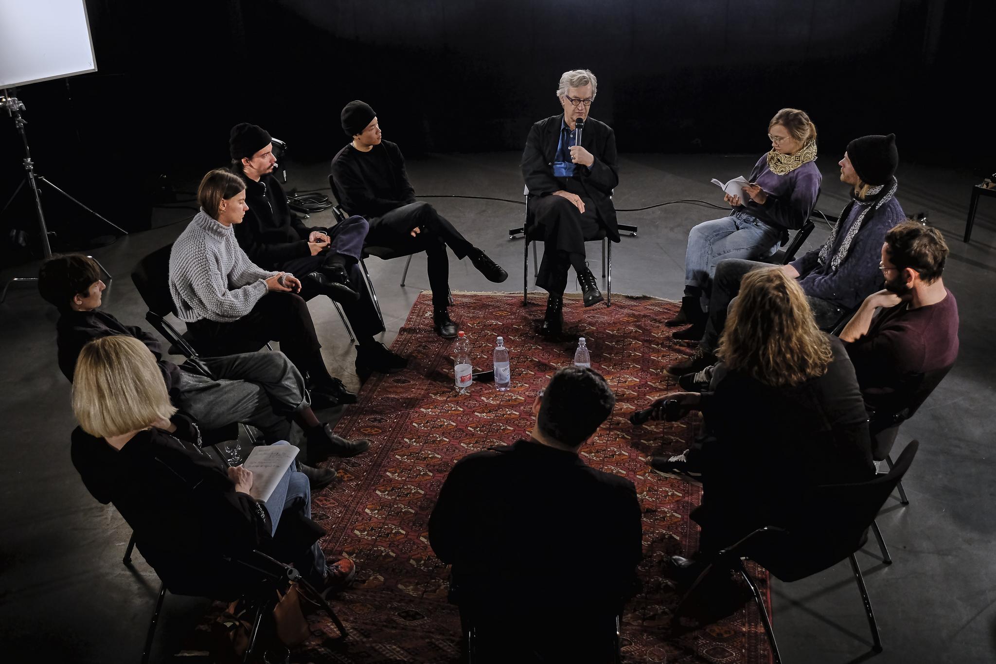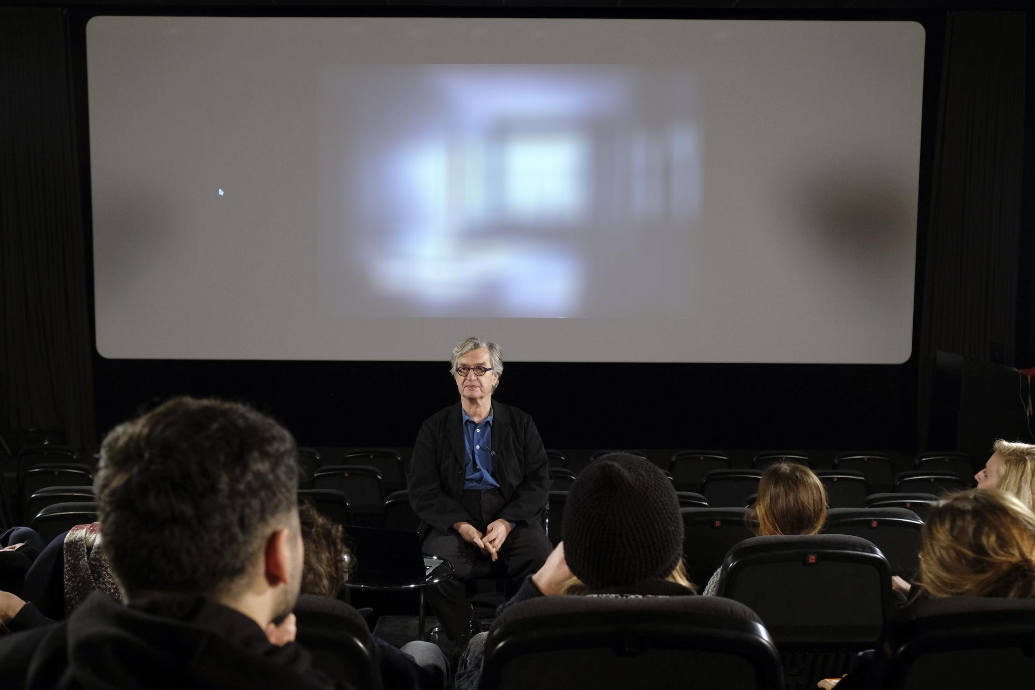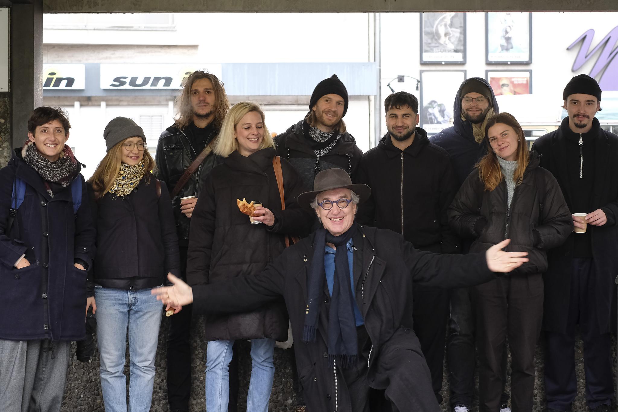 ‚A Sense of Place’ – der Ortssinn im Film – war Thema der ersten Wim Wenders Masterclass in NRW, für die der Regisseur und Produzent am Samstag den 24.11. 2018 Studierende der ifs internationale filmschule köln und der Kunsthochschule für Medien Köln einen Tag lang in Köln zum Dialog lud und ihnen als Mentor zur Seite stand. Wim Wenders: ""Das ist für uns ein neues Format, ein ‚interaktives Narrativ’ könnte man sagen. Wir sind gespannt, welche neuen Wege man mit diesem alten Begriff ‚Masterclass’ gehen kann. Unser erster Versuch geht vom ‚Ortssinn’ aus. Das ist ein ungemein wichtiger menschlicher Sinn, der mehr oder weniger entwickelt ist, aber enorm wichtig sein kann beim Entwickeln und Drehen eines Filmstoffes. Eigentlich ist der ‚Ortssinn’ kein klassischer Lehrstoff an Filmhochschulen, und deswegen wollten wir unser Experiment damit starten."" Passend zum Ortssinn, der laut Wim Wenders hilft, Geschichten zu (er)finden und auch durchaus dafür sorgen kann, dass sie erzählt werden, boten verschiedene Stationen das Setting für diese eigens für Köln entwickelte Masterclass. So fand diese nicht nur hinter verschlossenen Türen statt, sondern auch im Kölner Stadtraum, mit dem Ebertplatz als Startpunkt und einem Kölner Büdchen in der Schanzenstraße als Lunch Spot – eine Referenz an die berühmte Imbissszene aus ""Der Himmel über Berlin"" mit Peter Falk und Bruno Ganz. Ein Oldtimer-Bus wurde zum ‚Hörsaal’ für die einführende Lecture von Wim Wenders und überbrückte als verbindendes Element zugleich die Wegstrecke zwischen den beiden Hochschulstandorten links und rechts des Rheins. In der KHM fand am Vormittag ein Q&A mit Wim Wenders und den Teilnehmenden zur Entstehung des Films und zu den Orten von „Der Himmel über Berlin"" statt. Nachmittags kamen diese dann zum mehrstündigen Kolloquium in der ifs für die Kurzpräsentation und Diskussion ihrer eigenen Filmvorhaben zusammen. Prof. Sophie Maintigneux, Prorektorin der KHM: „DER HIMMEL ÜBER BERLIN hat eine Generation von Filmemacherinnen und Filmemachern geprägt und beeinflusst. Die KHM freut sich sehr darüber, ihren Studierenden die Chance bieten zu können, mit Wim Wenders zu dem Thema ,Ortssinn’ zu arbeiten in einem so inspirierenden und produktiven Rahmen wie dieser Masterclass.” Vorausgegangen war der Masterclass ein Screening der restaurierten Fassung von ""Der Himmel über Berlin"" im ifs-Kino am 2. November sowie ein 2-tägiges Vorbereitungsseminar am 3. und 4. November an beiden Hochschulen, angeleitet von Luise Donschen, der früheren wissenschaftlichen Mitarbeiterin von Wim Wenders als Professor für ‚Digitales Kino’ an der HFBK Hamburg. Die Masterclass ‚A Sense of Place’ ist eine Veranstaltung der Wim Wenders Stiftung, die Einbindung der Kölner Filmhochschulen ifs und KHM geht auf eine Initiative von Petra Müller, Kuratoriumsvorsitzende der Wim Wenders Stiftung, zurück.