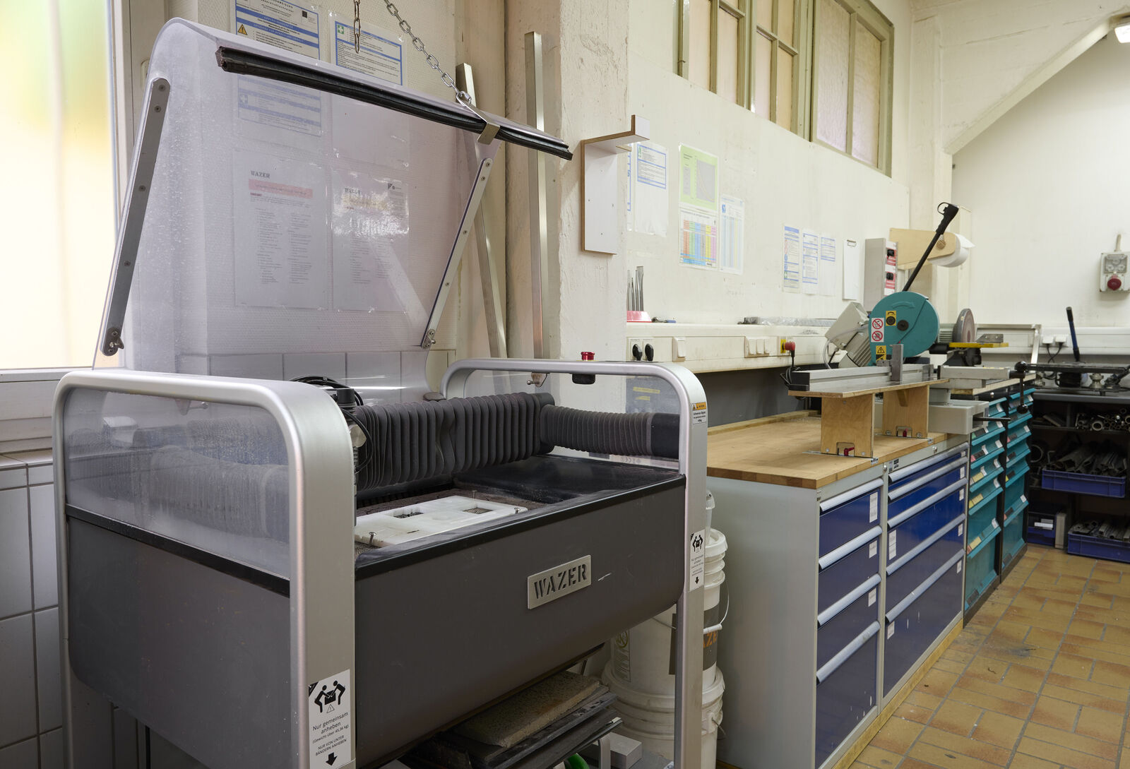 Die Werkstatt bietet insgesamt vier Arbeitsplätze an denen zeitgleich gearbeitet werden kann. Um einen garantierten Arbeitsplatz zu erhalten, bitten wir alle Studierenden sich vorher unter der Mailadresse werkstatt@khm.de anzumelden.