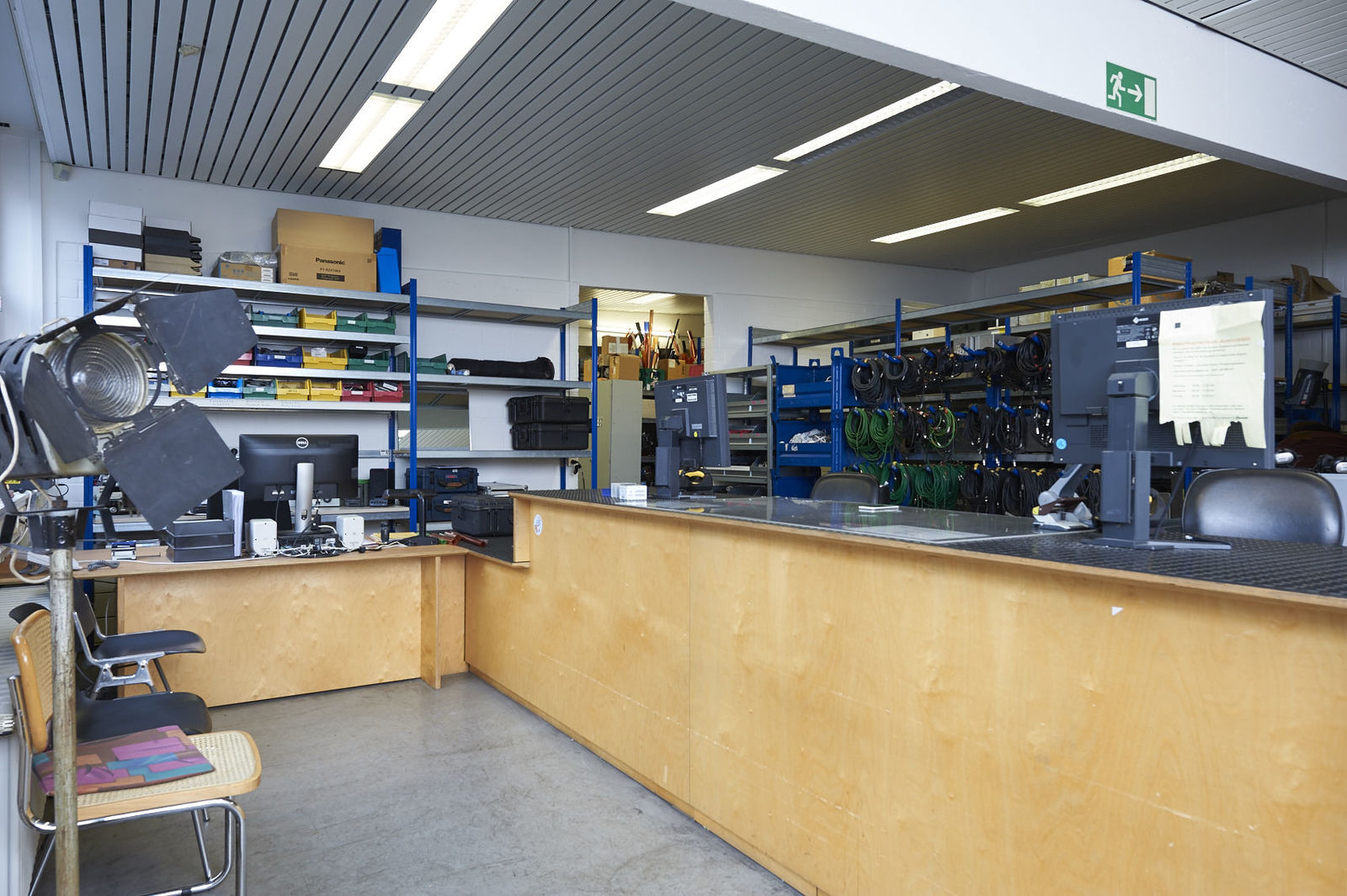 Resourcenverwaltung und Bereitstellung der Produktionsmittel für Projekte und die Lehre. Hierzu gehört die Ausstattung in Kamera, Licht, Ton und die Präsentationstechnik.