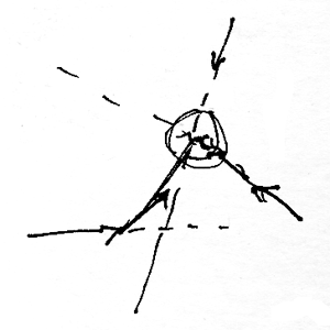 eine Person weicht aus. | ein Treffpunkt wird angepeilt. | Drei Personen sehen sich und müssen ihre
